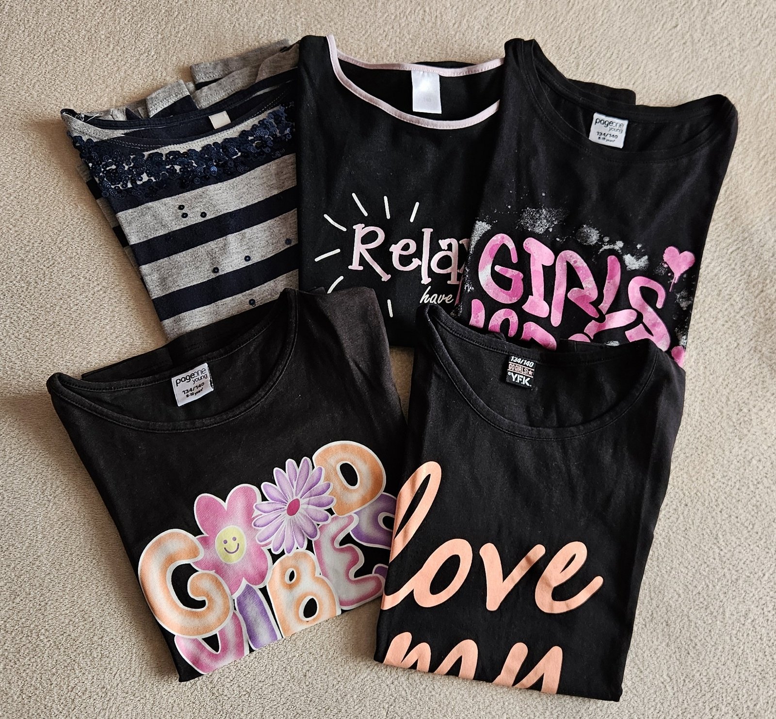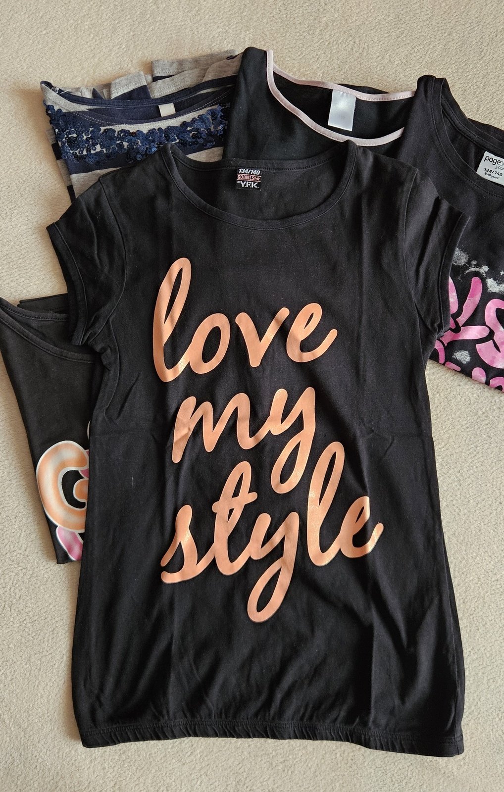 Dívčí mix triček (3x dlouhý a 2x krátký), 134/140