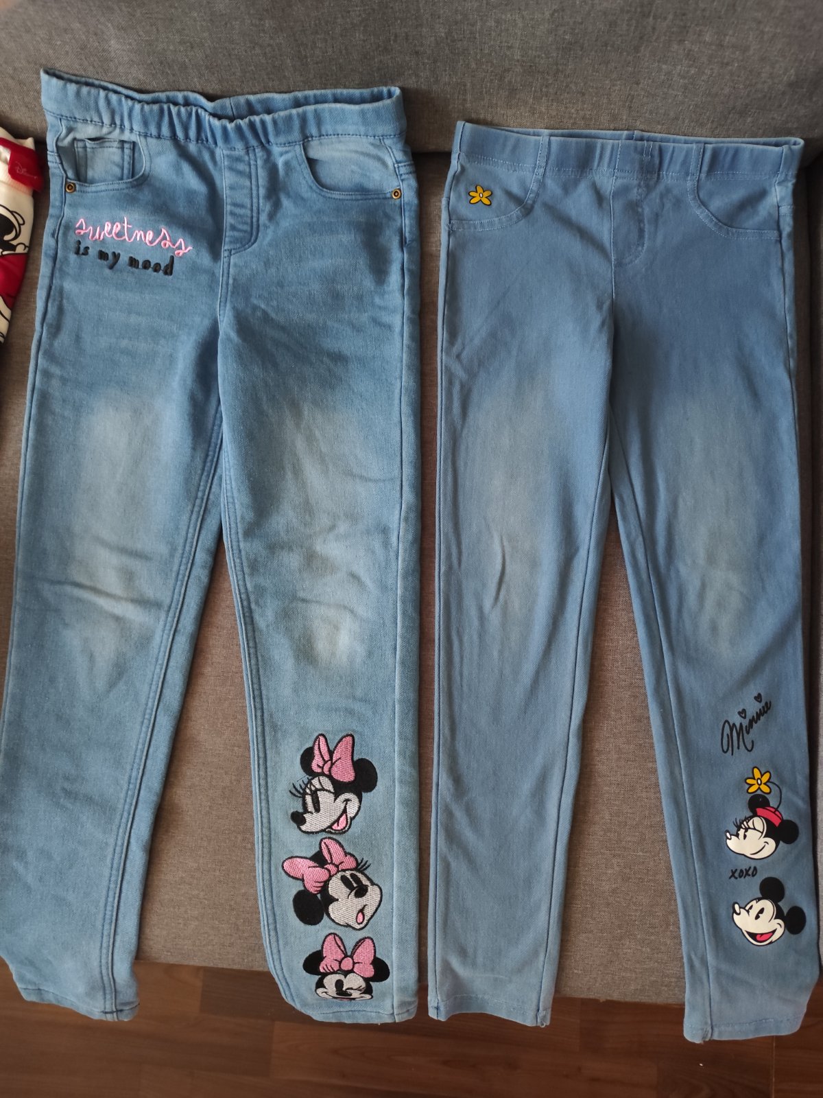 Sada obsahuje: 4x rifle (2x Mango, 1 x Coccodrillo, 1x H&M)-na riflích Coccodrillo je trochu ošoupané levé koleno, jiná bez vady 2x s dlouhým rukávem (Tchibo - má drobný flíček+ Disney) 1x svetr ...