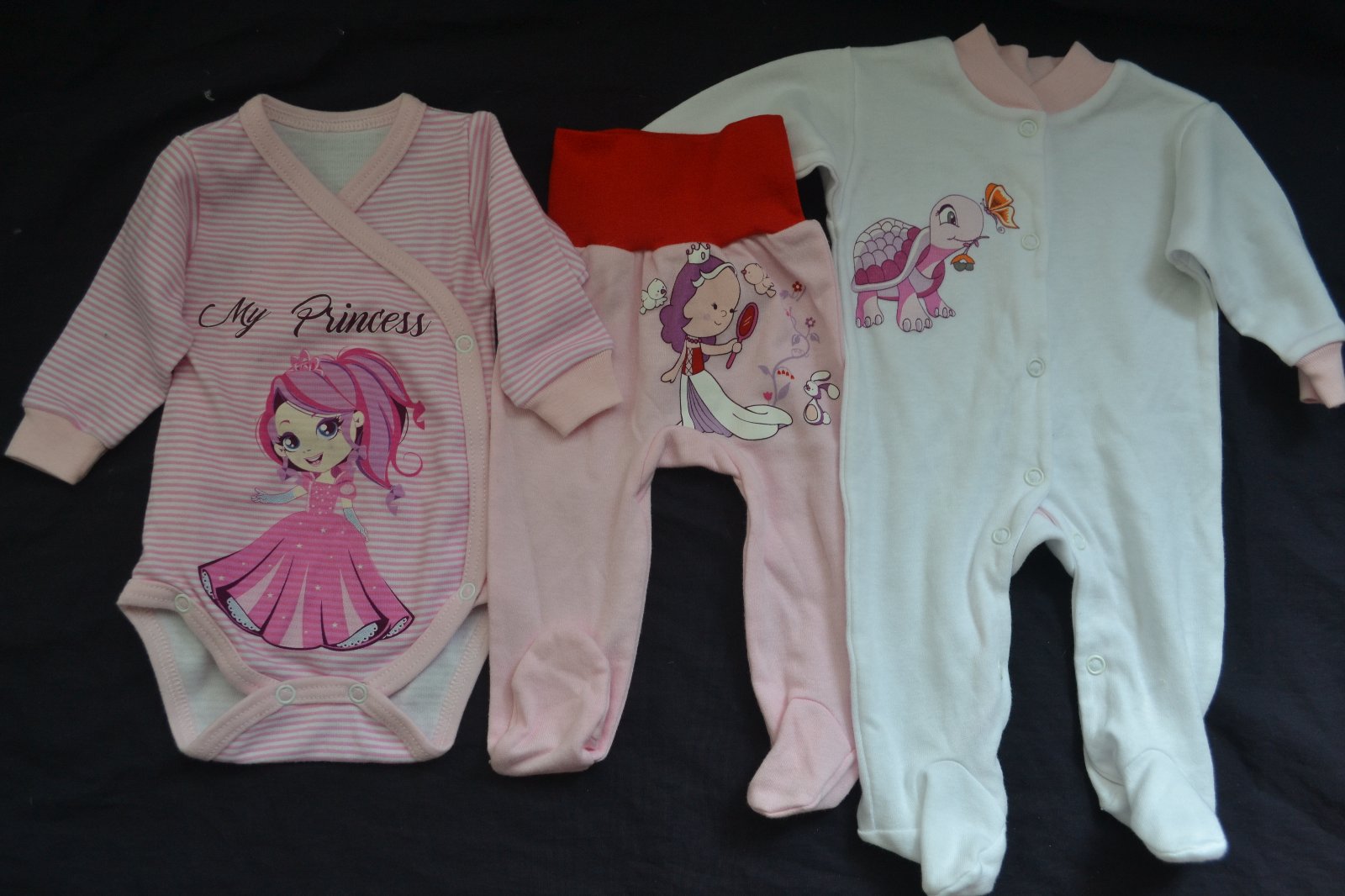 krásný dívčí kojenecký overal,výborné polodupačky a perfektní body v.56, 100% bavlna, všechny tři věci vyloženě praktické,za které bude ráda každá maminka, rozhodně se budou používat denně, všechny kusy nové, cena celkem za vše dohromady