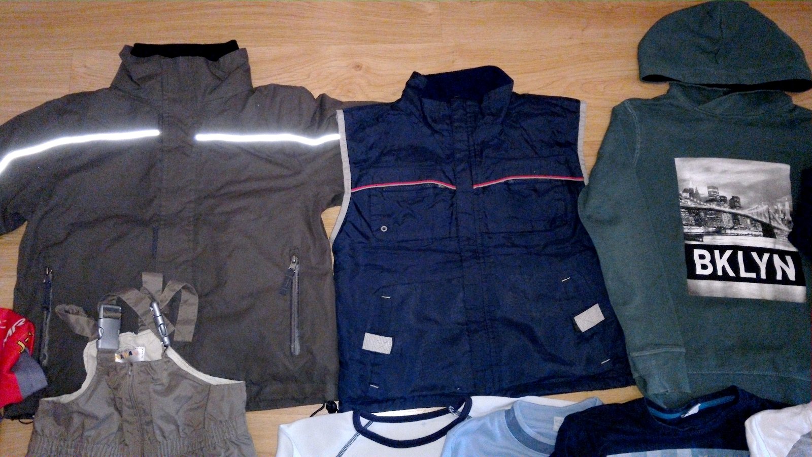 Přechodová bunda s vyndavací mikinou vel.116-128(200kč),přechodové kalhoty nepromokavé vel.116-128(200kč),vesta vel.116-128(50kč),3x mikina vel.116-128(50-100kč kus),6x triko dlouhý rukáv různé značky vel.116-128(50-100kč kus),25x triko krátký rukáv vel.116-128 různých značek(50-100kč kus),triko bíle se želvou prodáno!,3x tílko vel.116-128(20-50kč za kus),karečkované kalhoty vel.116-128(200kč),džíny zn.H&M vel.116-128 (200KČ),kalhoty proužek,tepláky vel.116-128(100kč kus),9x kraťasy ,plavky vel.116-128(80kč kus)3x trenýrky(20kč kus).