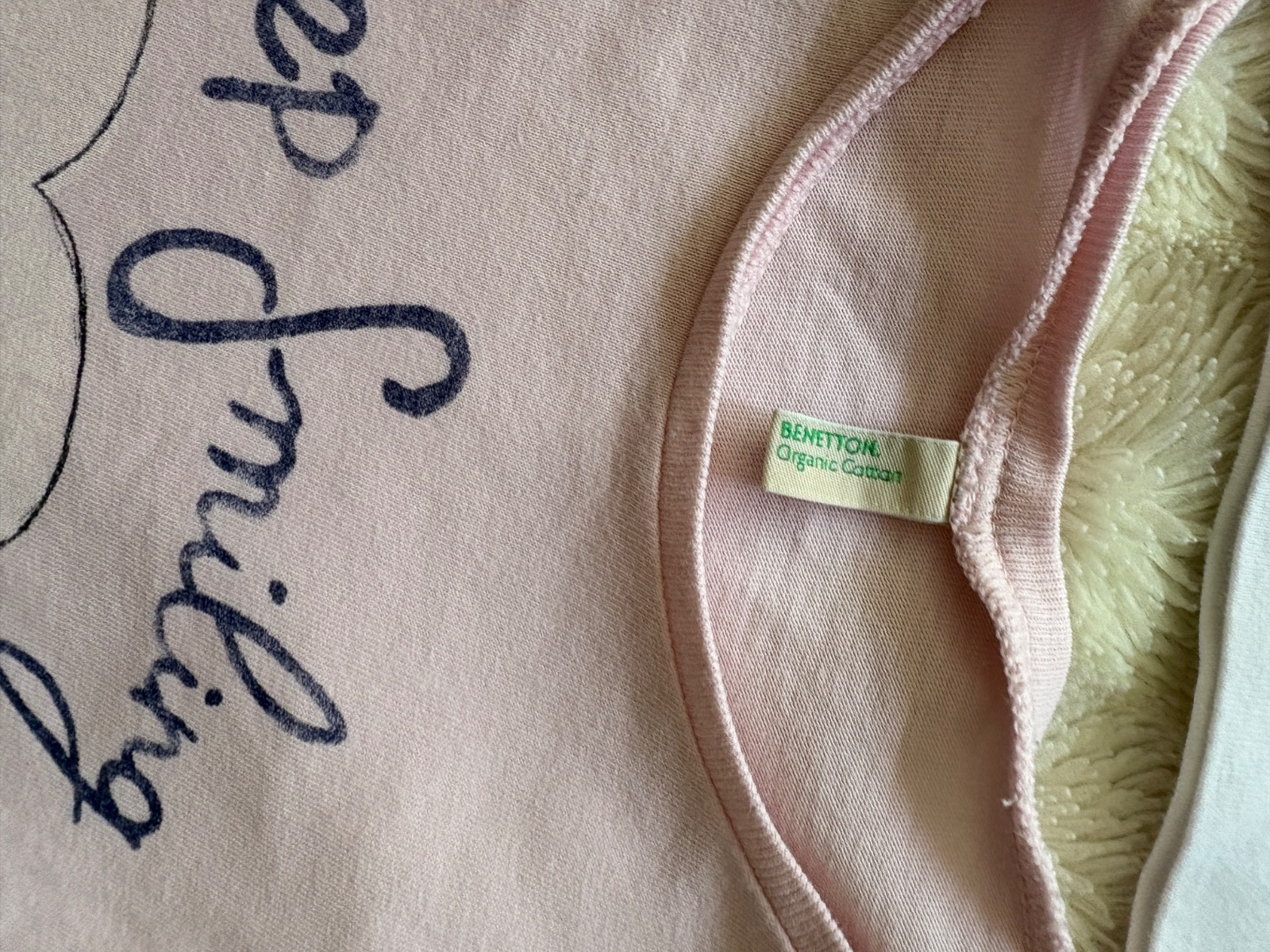 Druhá řada je růžové tričko Benetton ve výborném stavu.