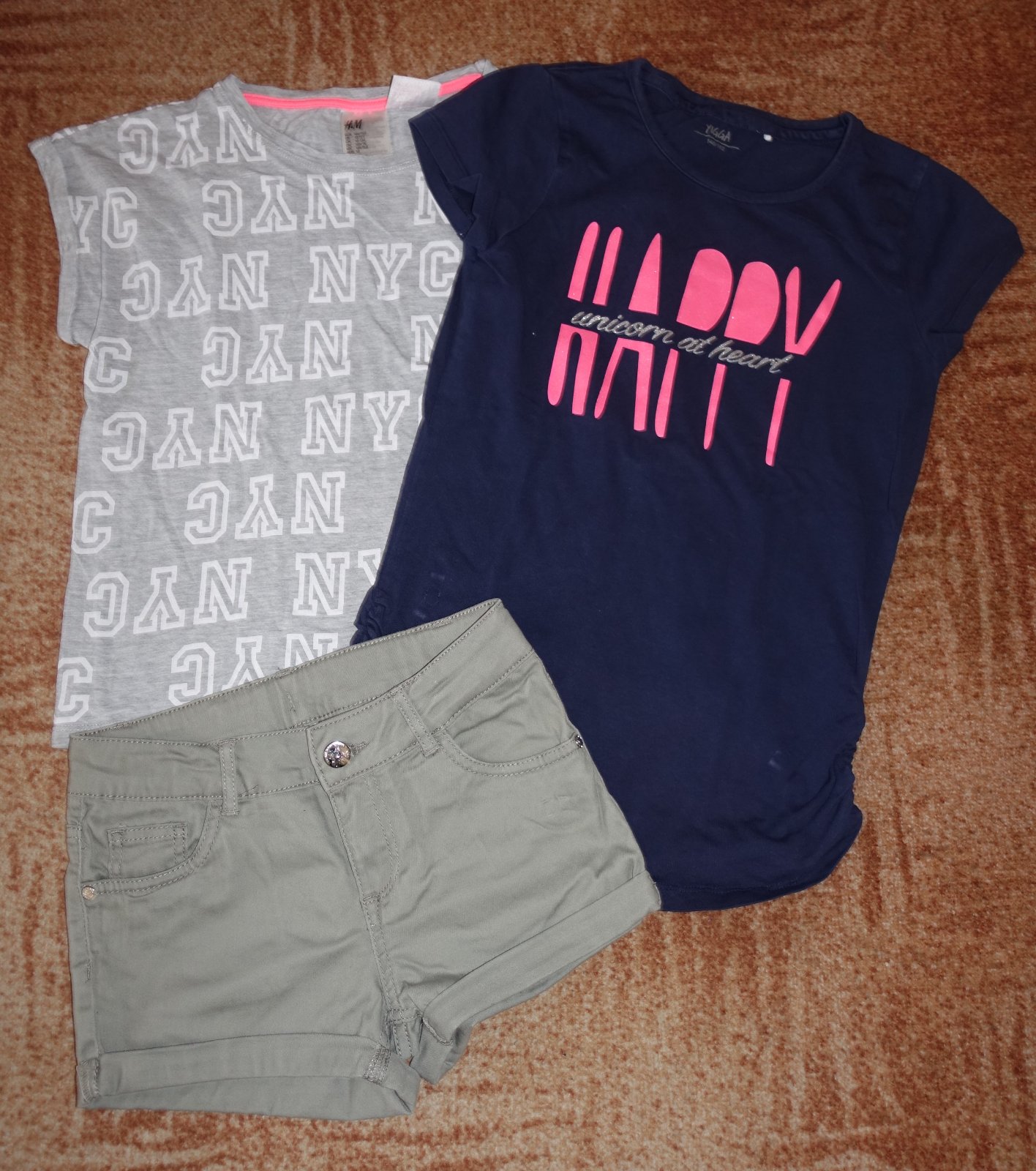Dívčí letní set oblečení vel. 146 - zn. HM, Takko, Yigga, kraťasy mají regulaci v pase, vše top stav, cena celkem 80Kč