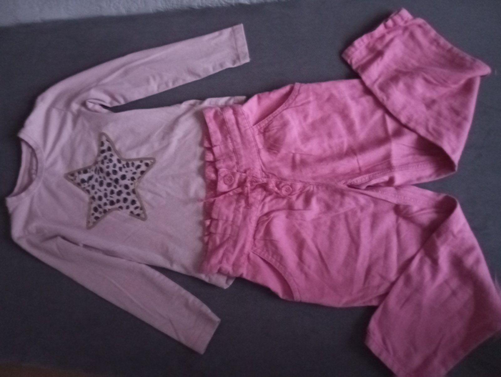 2 x tričko s dlouhým rukávem, 2 x s krátkým rukávem, 2 x tepláky, 1 x 3/4 kalhoty, bolerko.