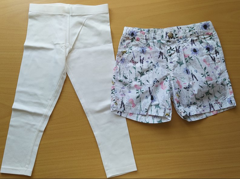 - kraťasy bílé s lučními květy - vel. 110, zn. H+M, jen vyprané, Kč 70,-