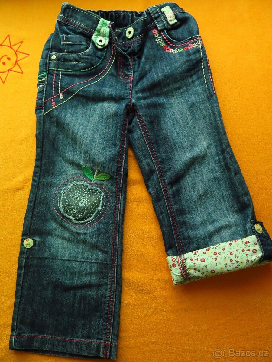 - rifle s jablíčkem - zn. Next, pěkný stav, bez vad, v pase guma + zapínání na knoflík, vpředu 3 kapsy, vzadu 2 kapsy, možnost srolovat nohavice na 3/4 kalhoty se zapnutím na knoflík, Kč 150,-