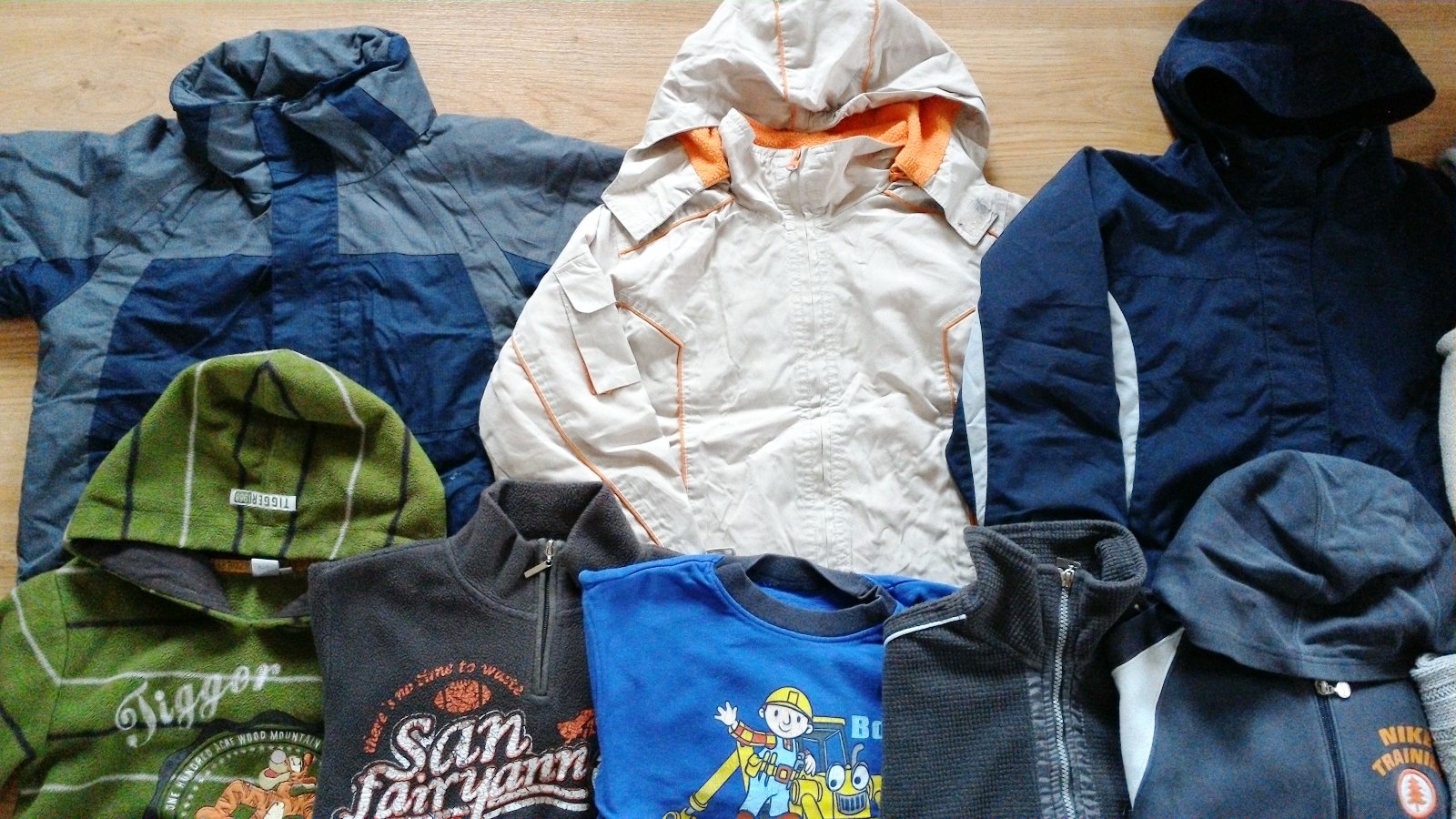 Bunda tmavá přechodová vel.110-122(100kč),bunda oranžovobéžová vel.110-122(100kč),bunda jarní tmavá zn.Lewro vel.110-122(100kč),vesta vel.110-128(100kč),4xčepice vel.110-128(50kč kus),svetr šedý vel.110-122(100kč),5xmikina(1xmikina s kapucí prodána!) vel.110-128(50-100kč kus),7xtriko dlouhý rukáv vel.110-128(50-100kč kus),11xtriko krátký rukáv vel.110-128(30-80kč kus),rifle modré,kalhoty červené(nové) vel.110-122(100kč kus),hnědé rifle prodány!4xkraťasy vel.110-128(80kč kus),10xslipy vel.110-128(20kč kus),10xponožky (10kč kus).