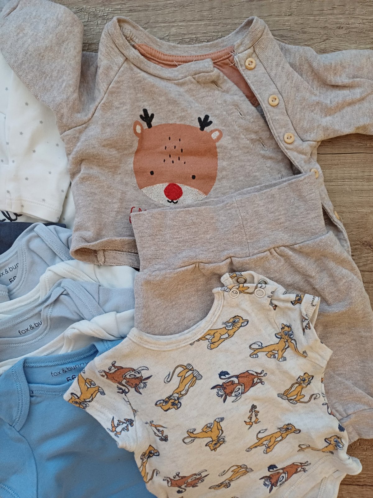 Hezky stav, set obsahuje 21ks ruznych znacek HM, So Cute Fox and Bunny, z toho jsou 5ks teplejsi overalek bez vad, 3ks tensi overalek (jeden mensi dirka), 1ks setik mikinka a teplacky hezky stav HM, dalsi jsou dlouhe bodycka 5ks zcela nove, 5ks bodycka s kratkym rukavem taky zcela nove a jedno bodycko s kratkym Lion hezky stav 🦄🤍🩵🦋
