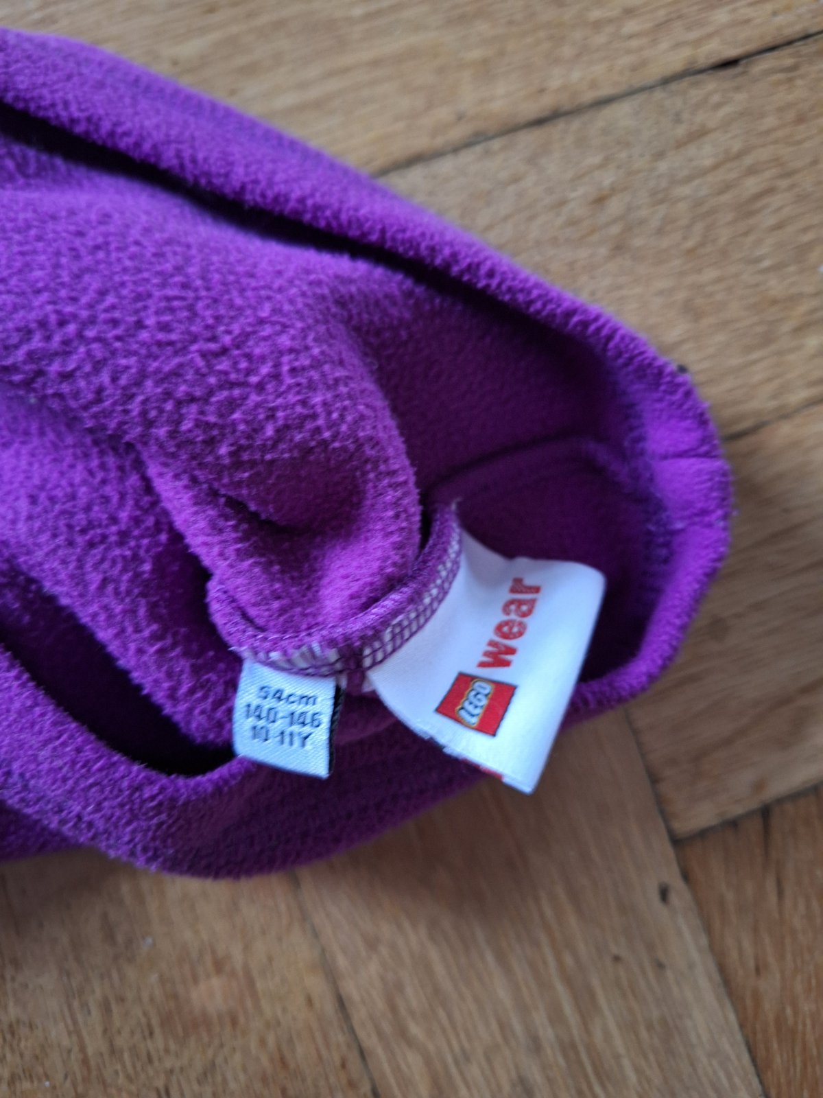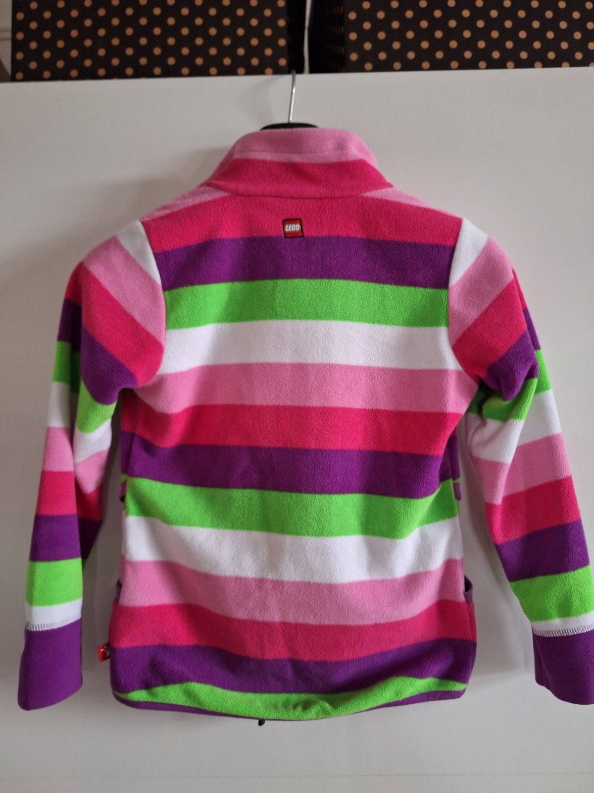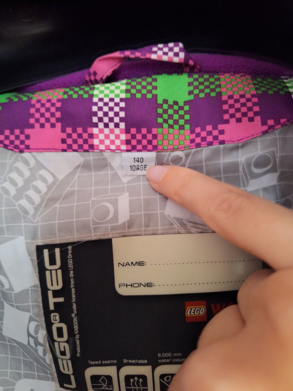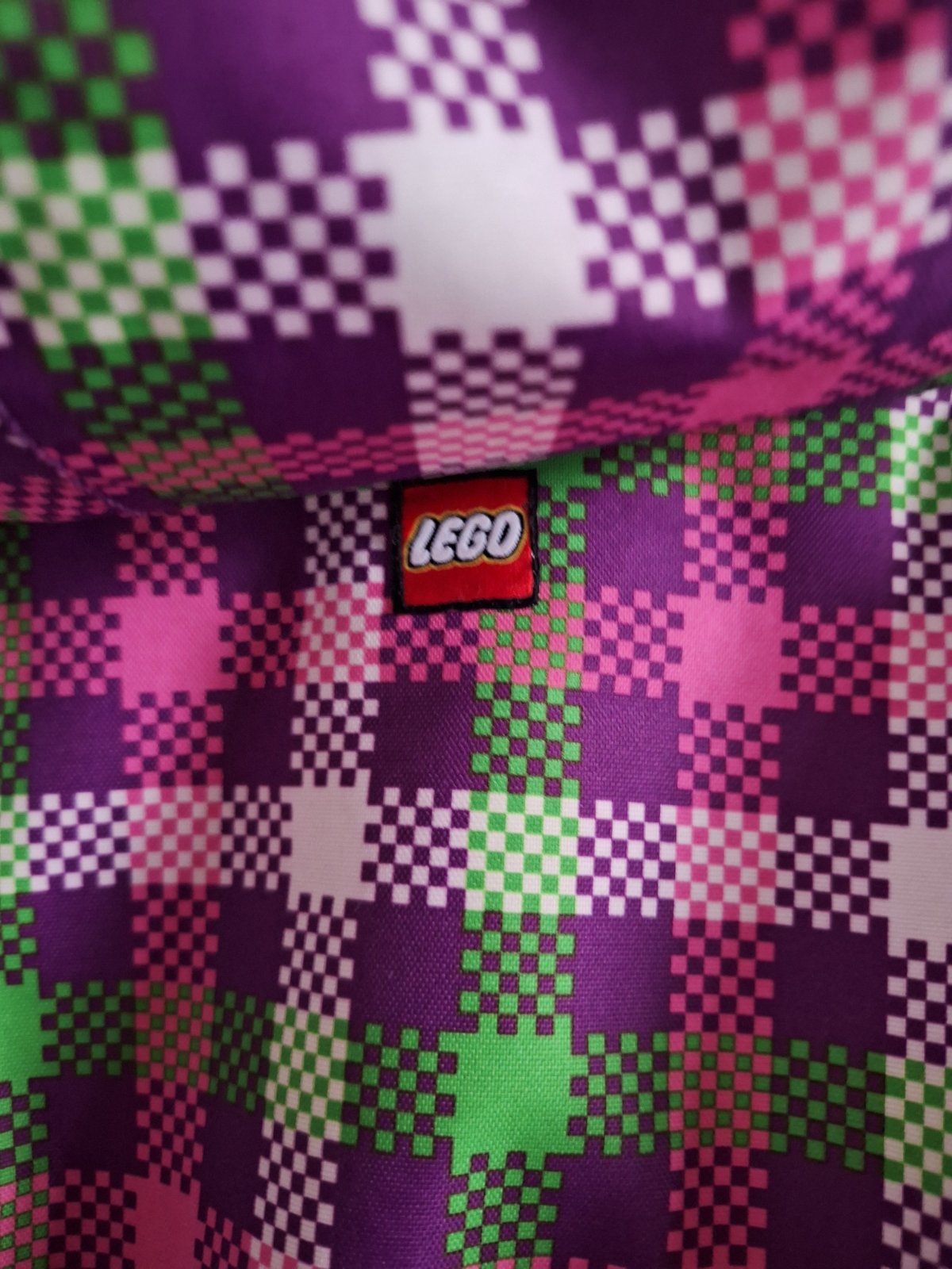 Bunda, lyžařské kalhoty, pruhovaná mikina a čepice značky Lego.