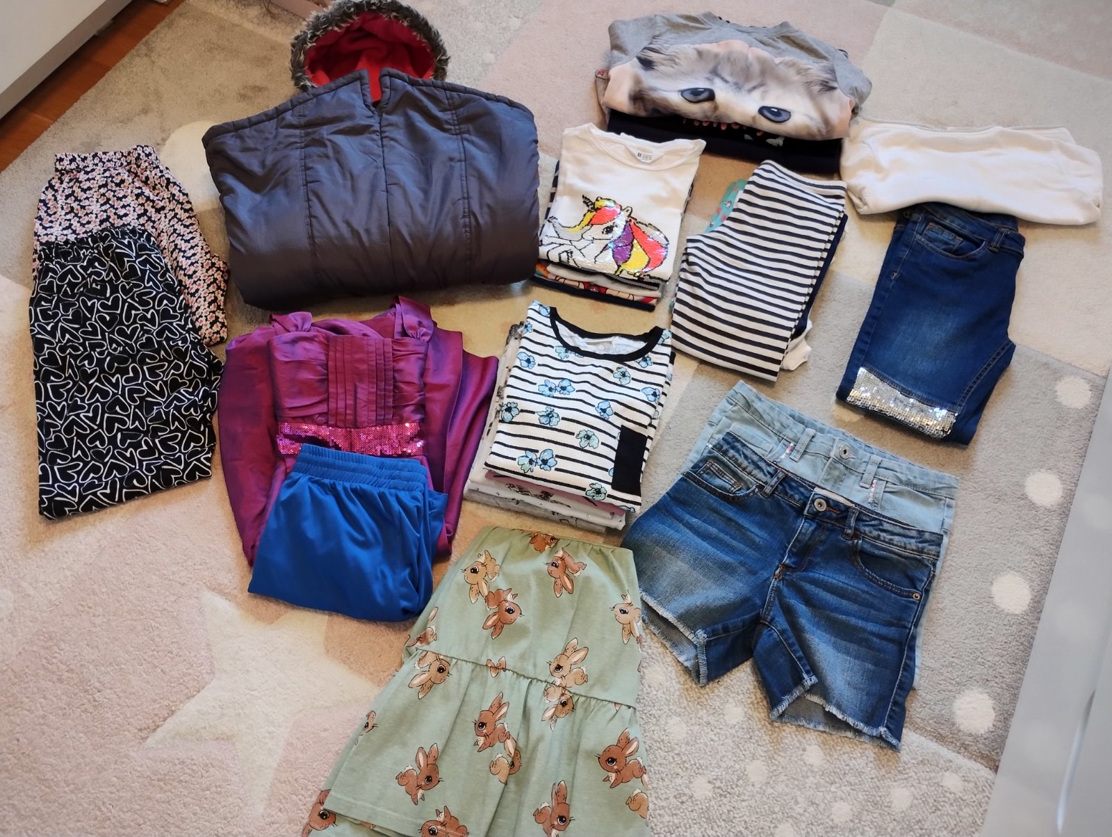 Prodám velký balík nádherného oblečení pro holčičku, velikost 134/140, celkem 28 kusů ve výborném stavu. Trička s krátkým i dlouhým rukávem, mikiny, šaty, kraťasy, legíny 3/4, legíny dlouhé, letní kalhoty, rifle, propinaci svetřík, zimní kabát. Osobní odběr možný ve Zlíně nebo pošlu poštou/ Zásilkovnou.