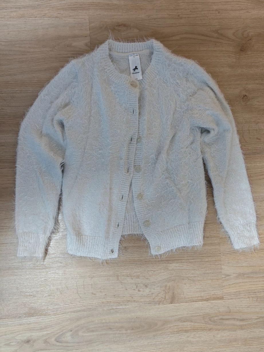 Bily chlupaty svetr;