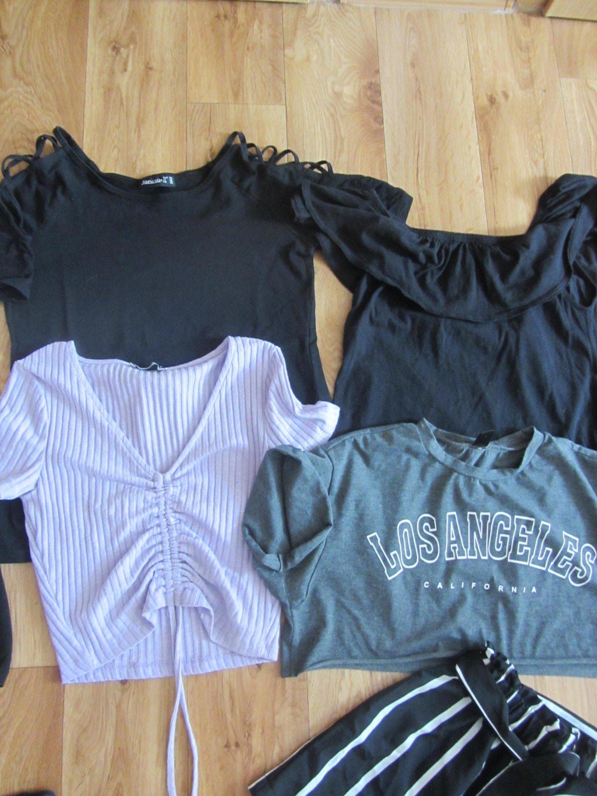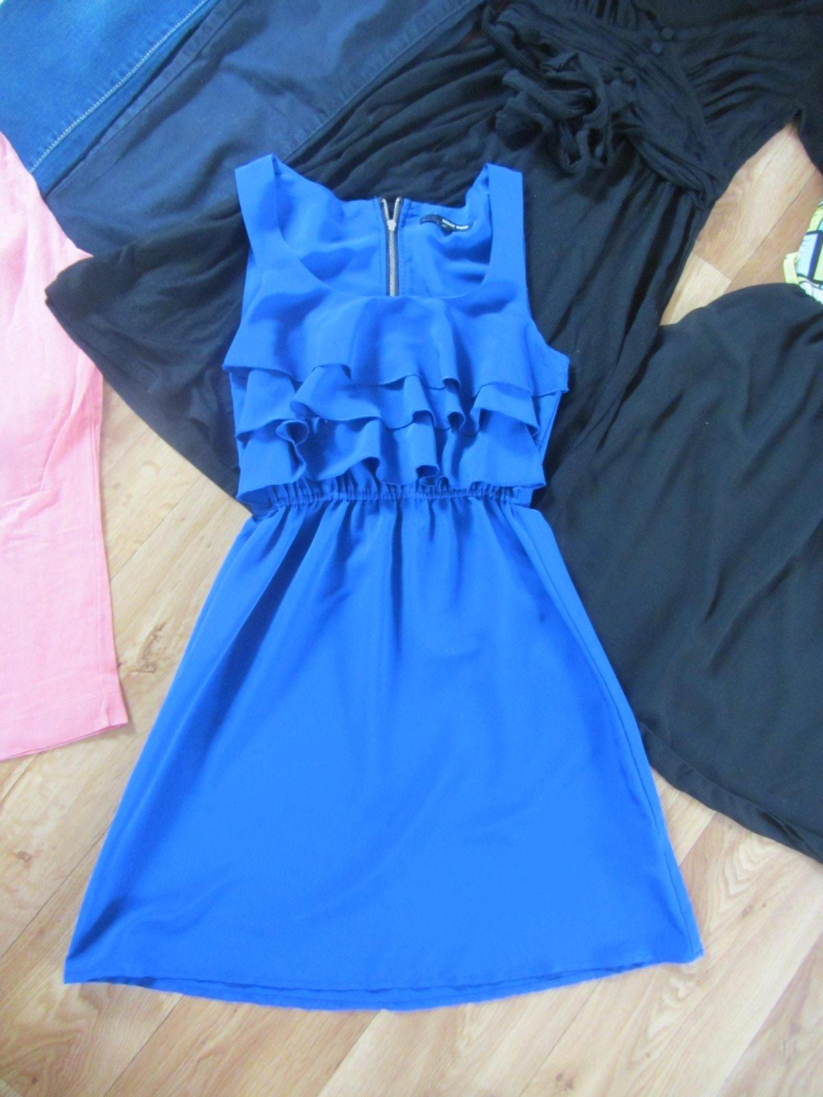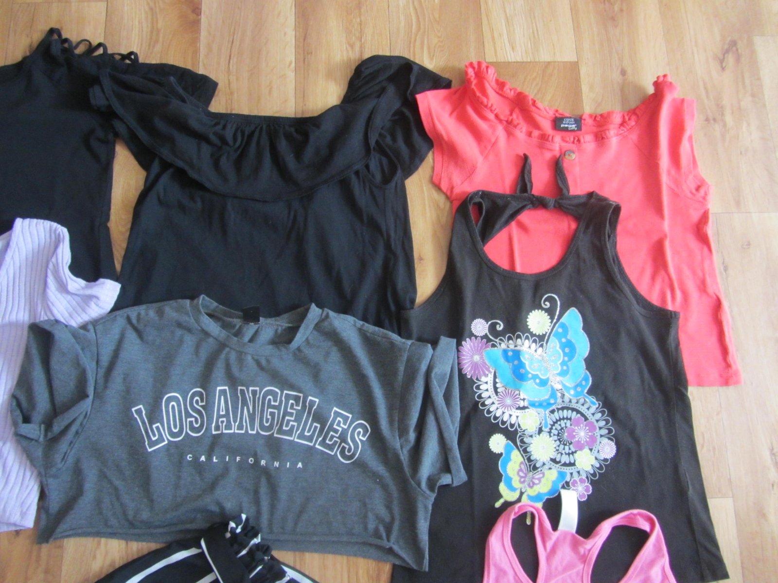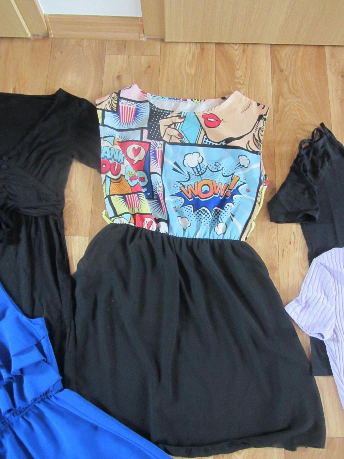 Prodám balík oblečení na holku vel. 14- 15 let. Něco na parádu, něco na doma. Fotky jsou zkreslené, ve skutečnosti jsou barvy syté. Černé džegíny a černobílé kraťasy nenošené. Modré šaty jsou krásně modře syté. Šaty s barevným potiskem již nemají pásek.
