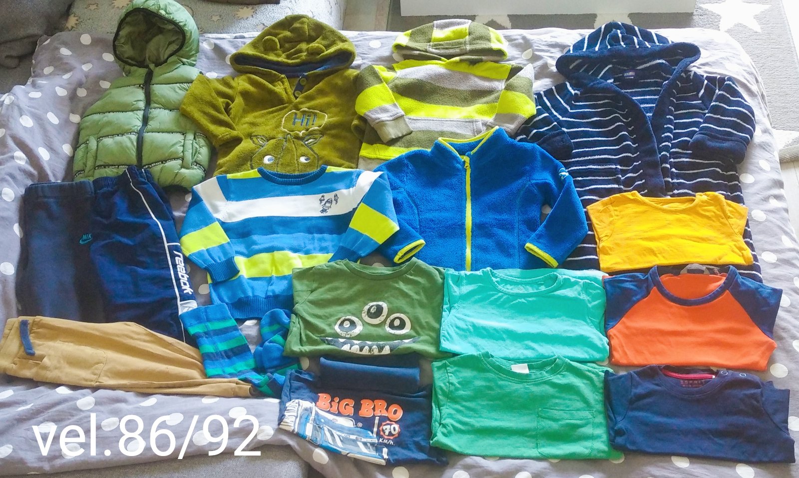 2 x kalhoty, 2 x triko s krátkým rukávem, 1 x termotriko (zn. www.maledeti.cz), 2 x mikina (jedna zn. Umbro), 1 x lehká bundička