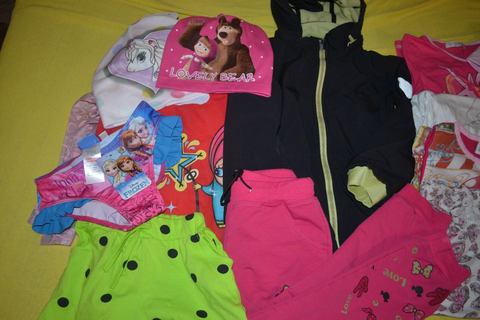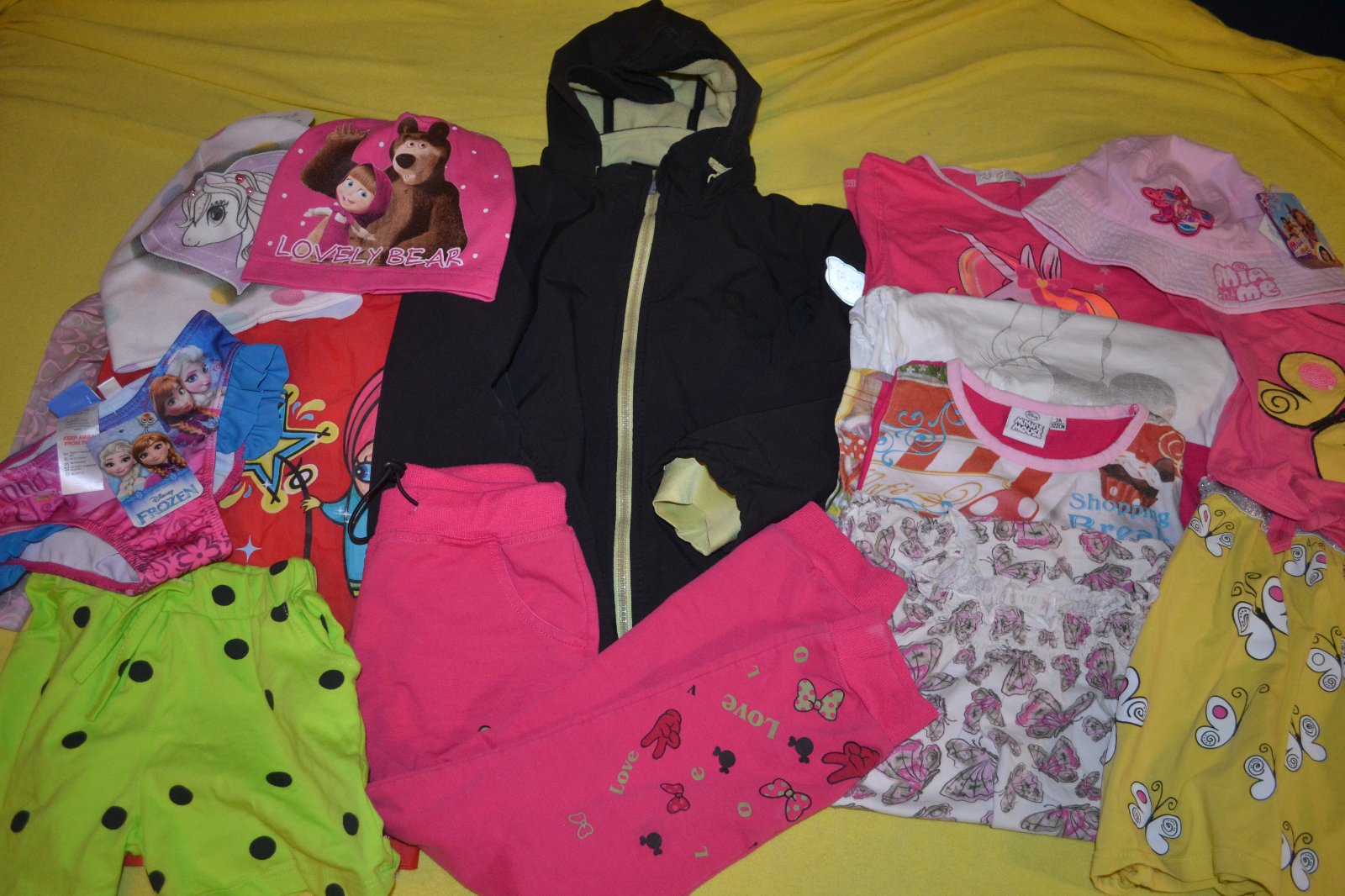 13kusů dívčí oblečení: softshellová bunda,trička, tepláky, set se sukní,tyto věcí skvělý stav a další polovina věcí uplně nová: plavky, dvě jarní čepky, pláštěnka,kraťasy, klobouček. Původní cena celkem 1730kč. Zde velká sleva-cena celkem za všech 13 kusů.