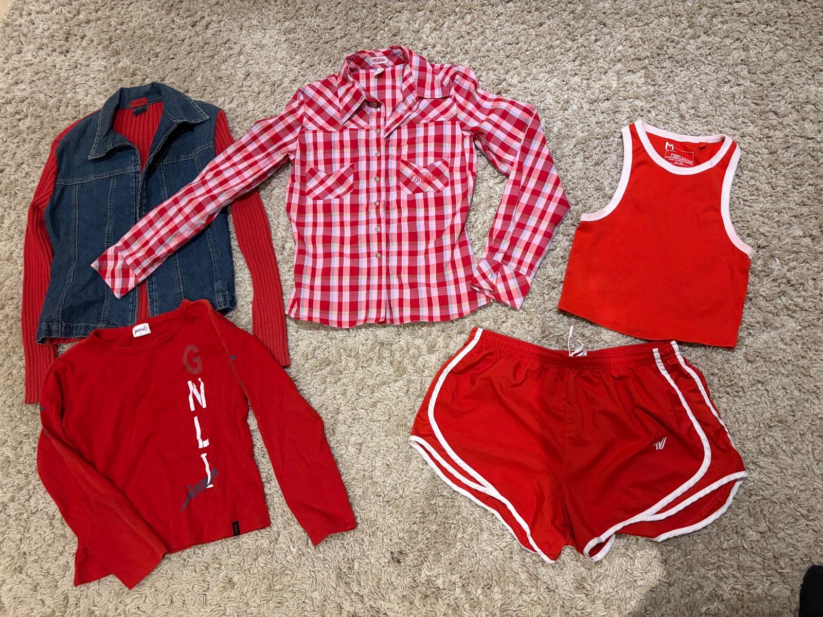 Sada cervena košile, kraťasů, topu,trička,svetru