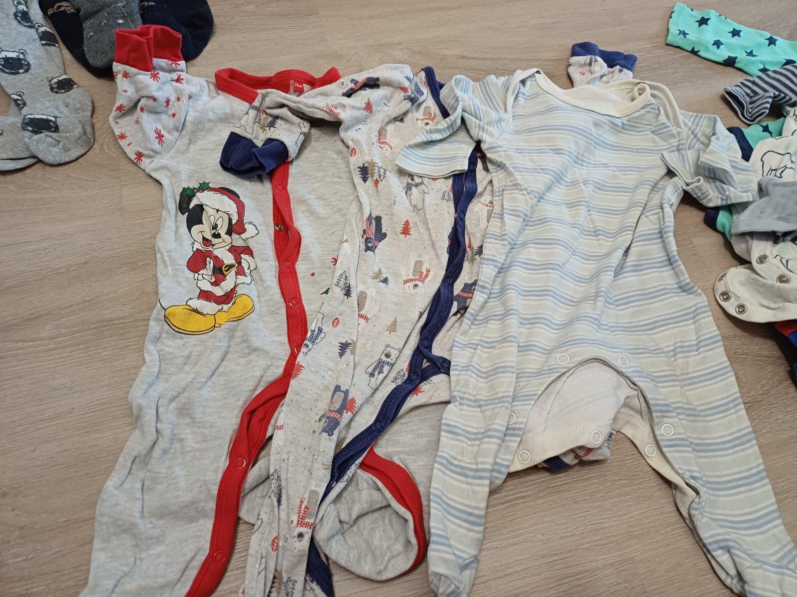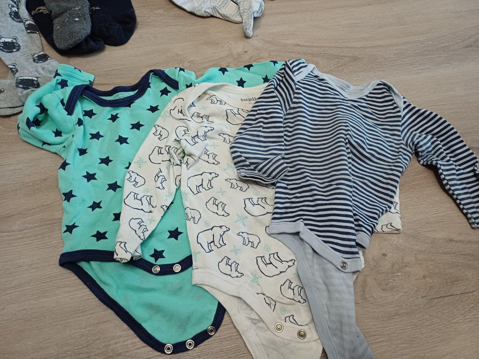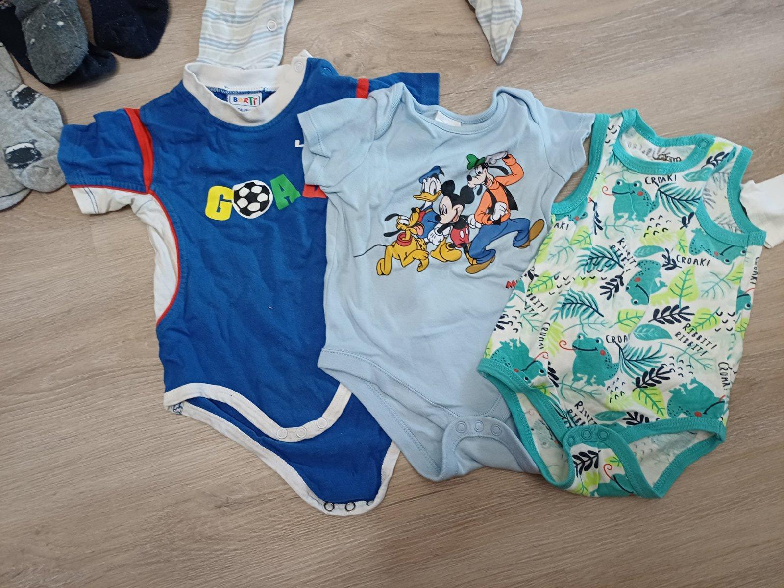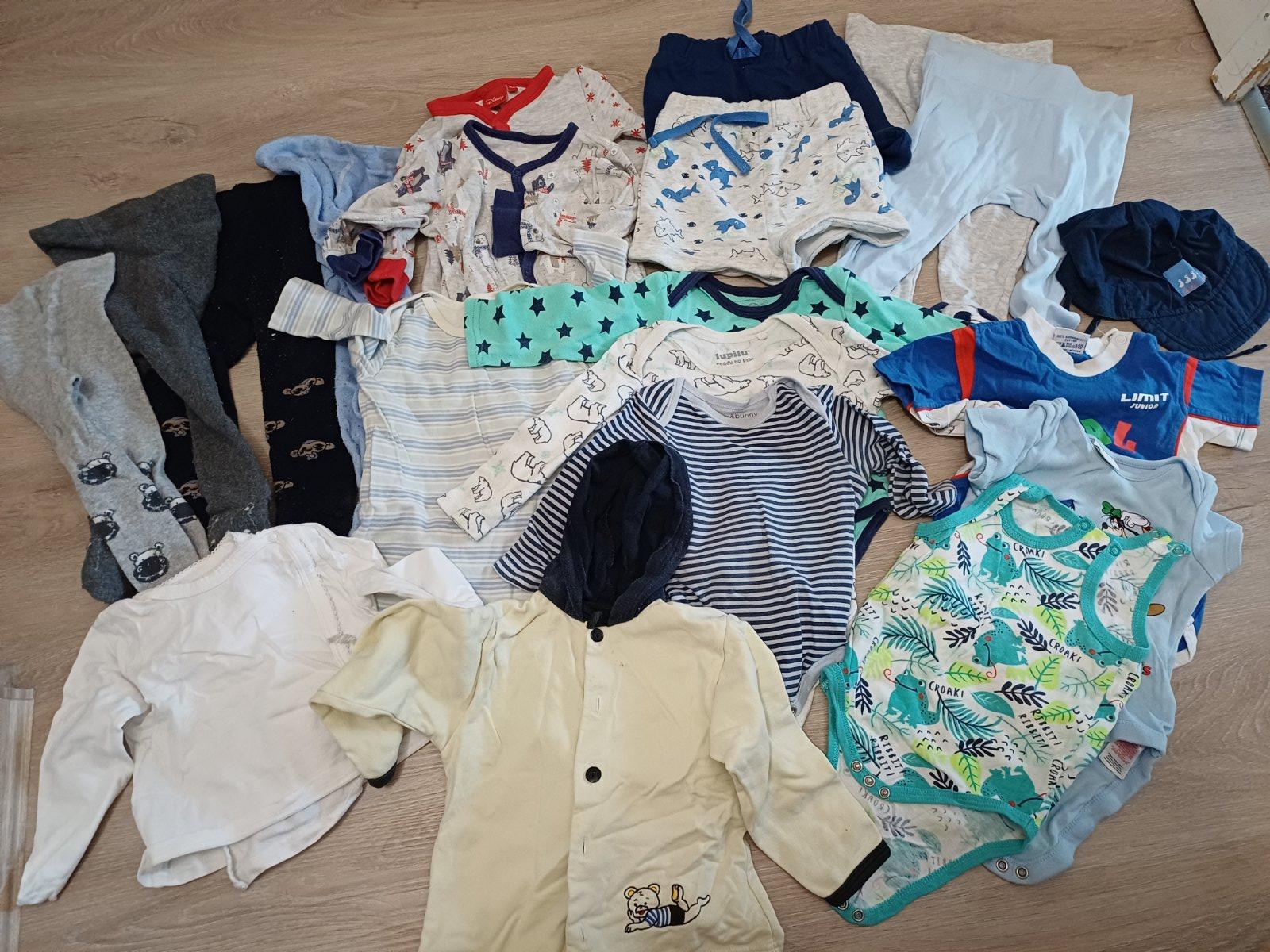 Mix oblečení, 20ks, velikost 74, značka Lupilu, F&F, Sinsay, Pepco, ergee, cena za vše. 3x overal, 3x body dlouhý rukáv, 2x body krátký rukáv, 2x bez rukávu, 2x kraťasy, 2x tepláky, 4x punčocháče, tričko, mikina, kšiltovka.