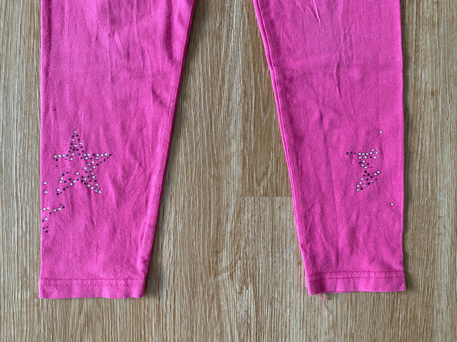 Růžové legíny – odstřižená visačka, délka 67 cm, opadané ozdobné kamínky