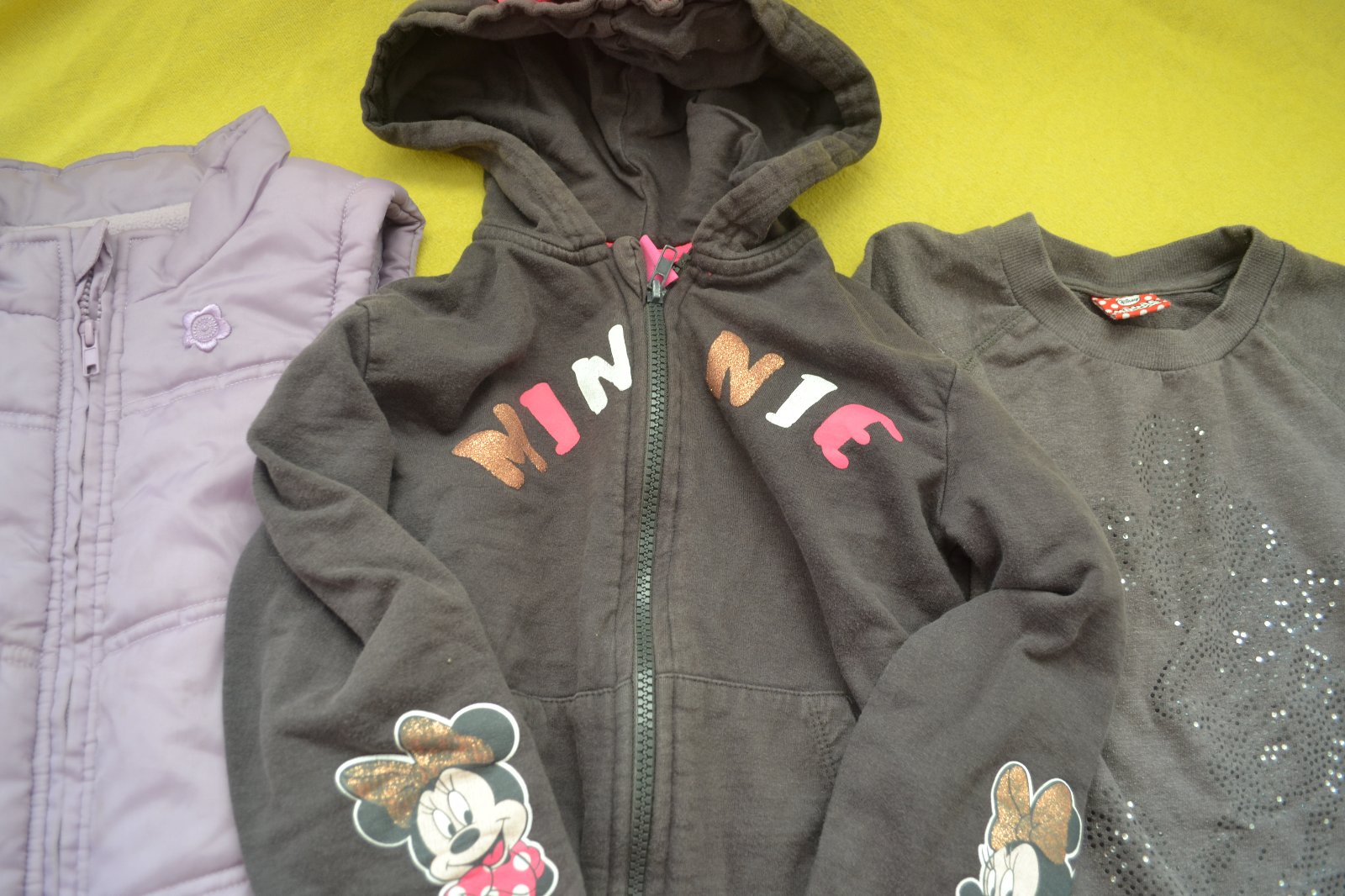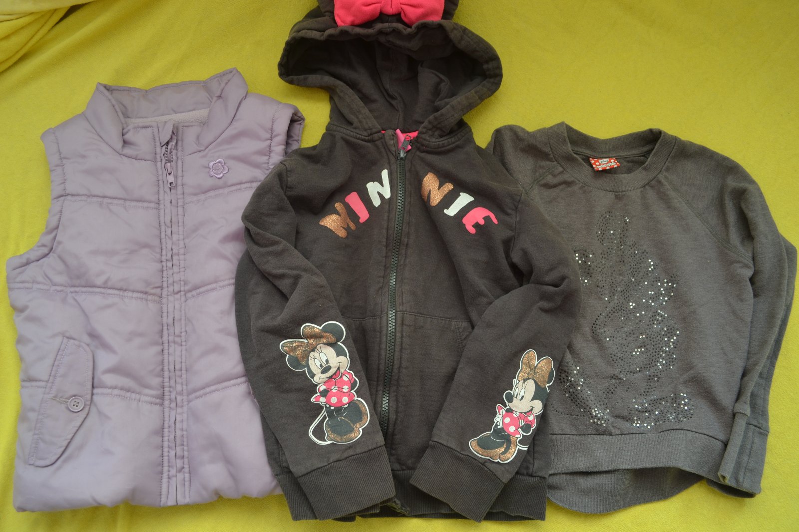podzimní vesta a 2x mikina Disney v.116, nošené, praktické