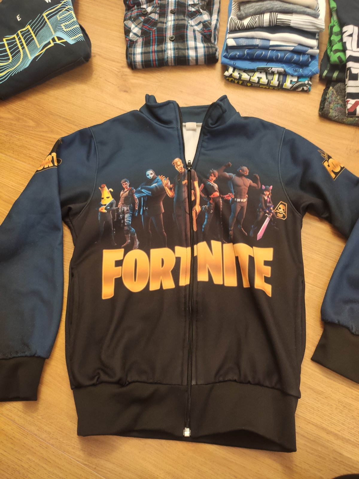Mikina na zip, uvnitř fleece, 2 kapsy, vpředu i vzadu motiv FORTNITE