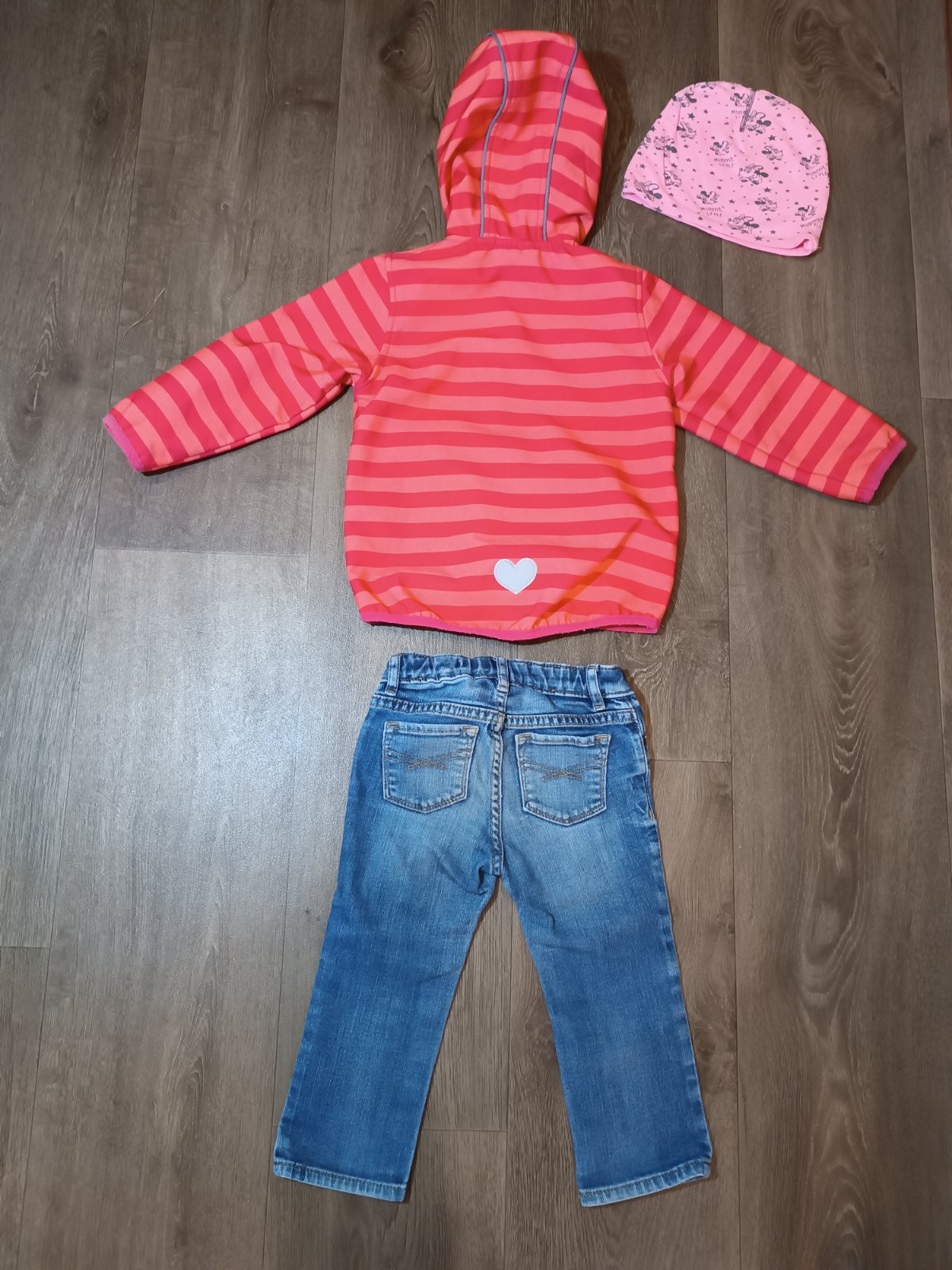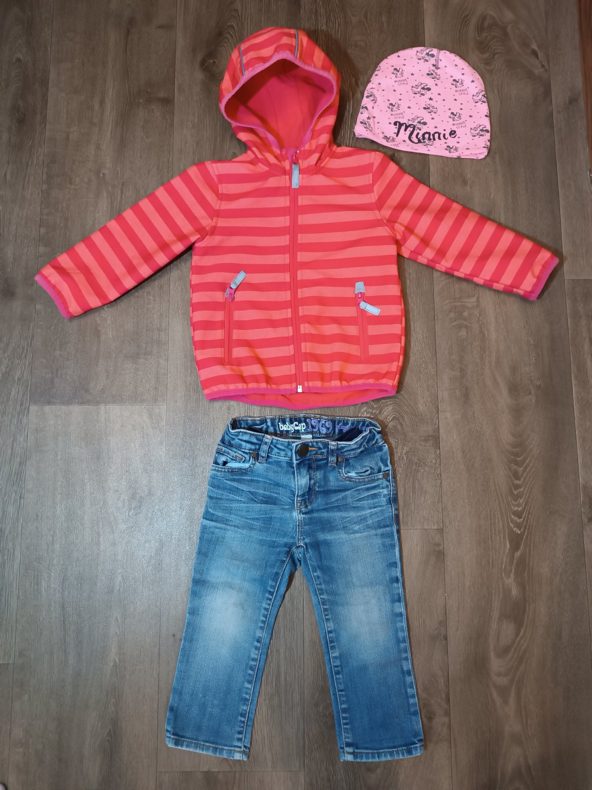 Prodám softshellovou bundu Topomini, vel.92, džíny Baby Gap, vel.86/92 a bavlněnou čepičku s motivem myšky Minnie, zn. Disney baby.