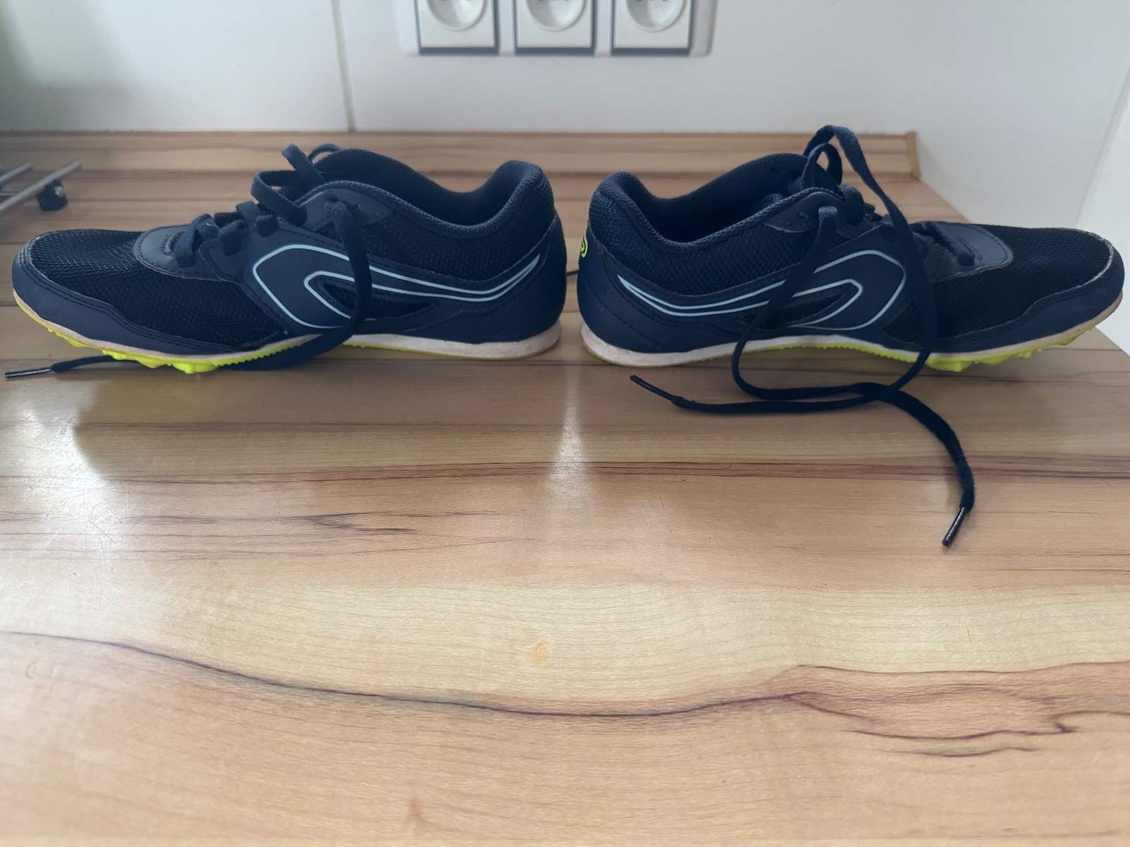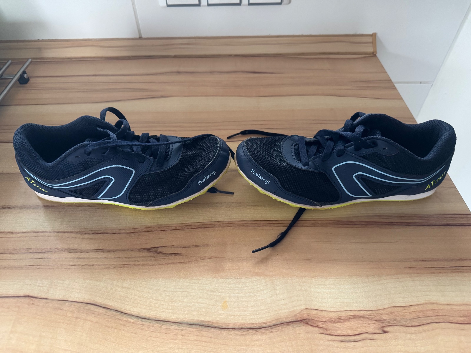 Atletické tretry kupované v Decathlonu ve velmi dobrém stavu - používané. Na dvou místech (viz foto) malé drbnutí. Na tréninky jsou dostačující.