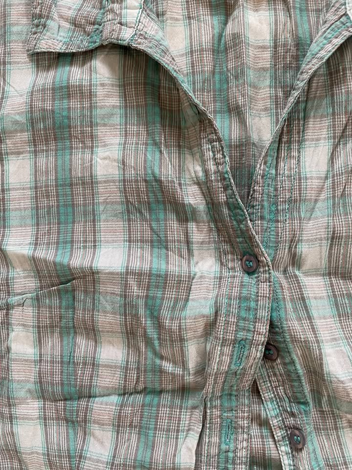 898. nabízím k prodeji tuto káro halenku, vel S, AMisu. Příjemné tony v odstínu světle mint a šedá. Příjemný vzdušný materiál, nejde přečíst ale asi bavlna. Nošená, bez vad, krásná