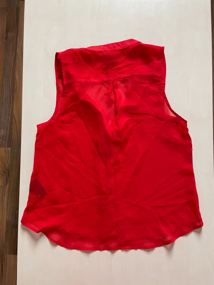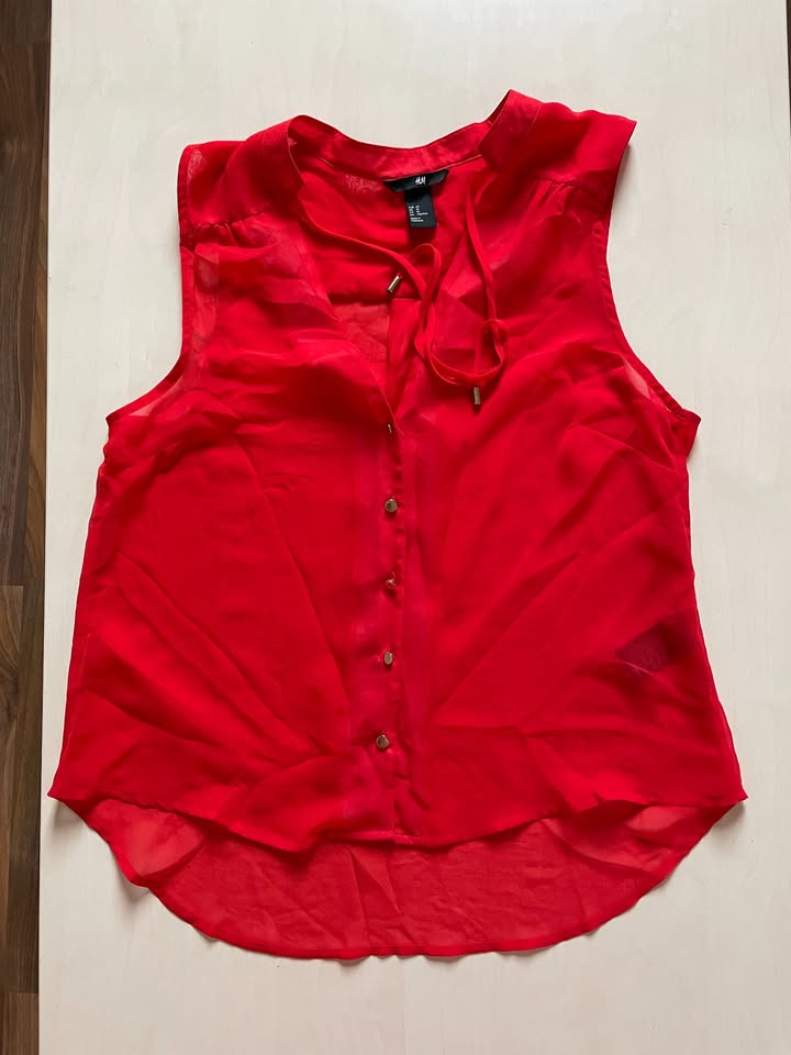 3371. nabízím k prodeji tuto červenou halenku, vel 40/tedy L, HM. Materiál lehoučký, prosvítavý. U krku tkanice. 100% polyester. Nošen, bez vad, krásné