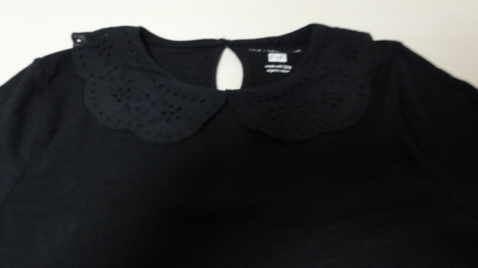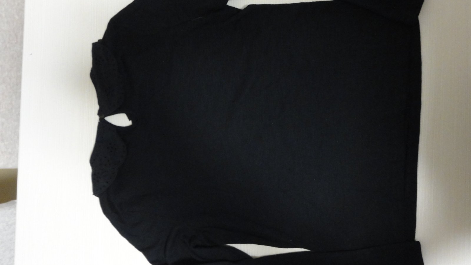 Černá halenka s dlouhým rukávem a krajkovým límečkem. Velkost 158. Jako nová.