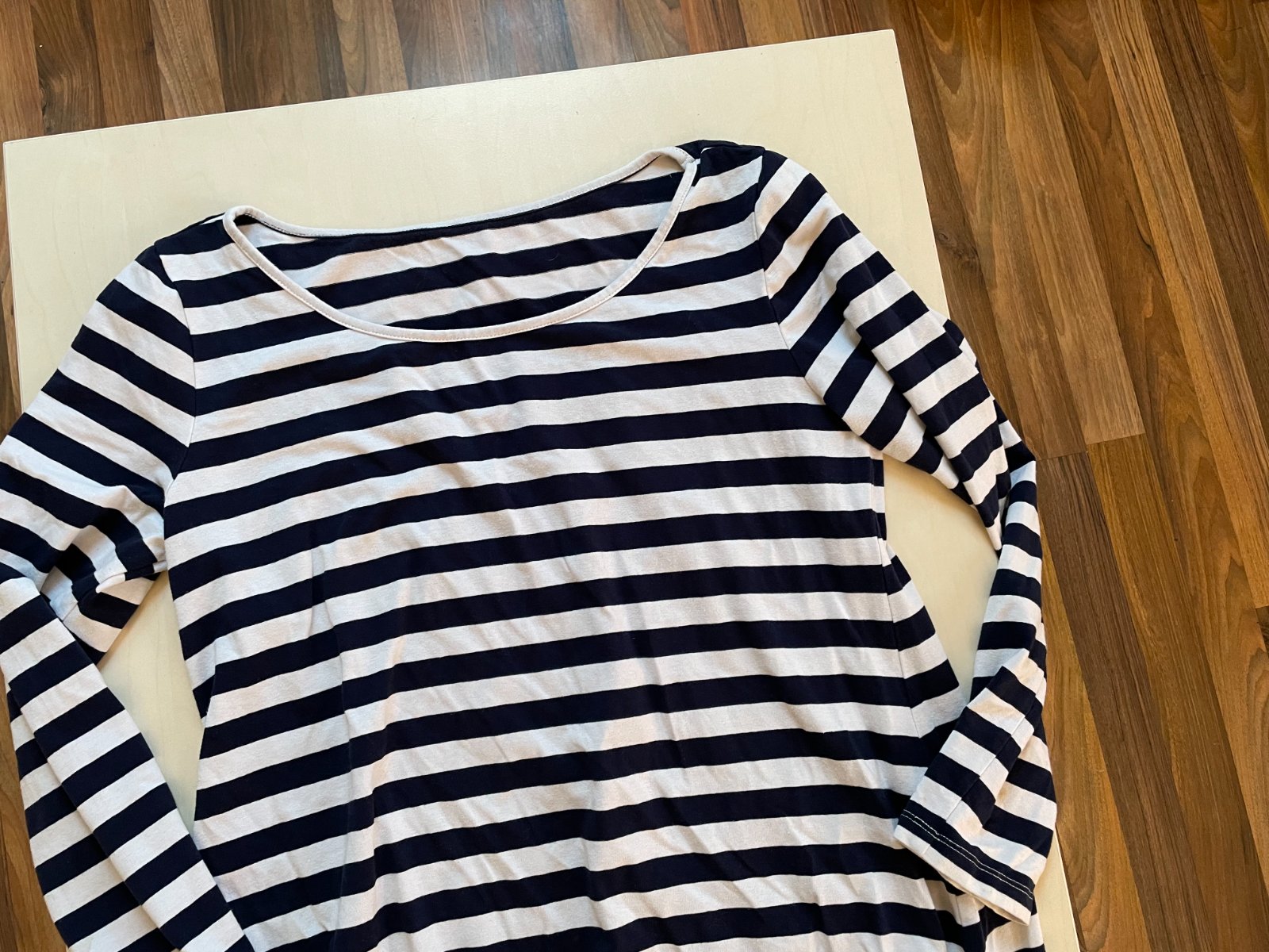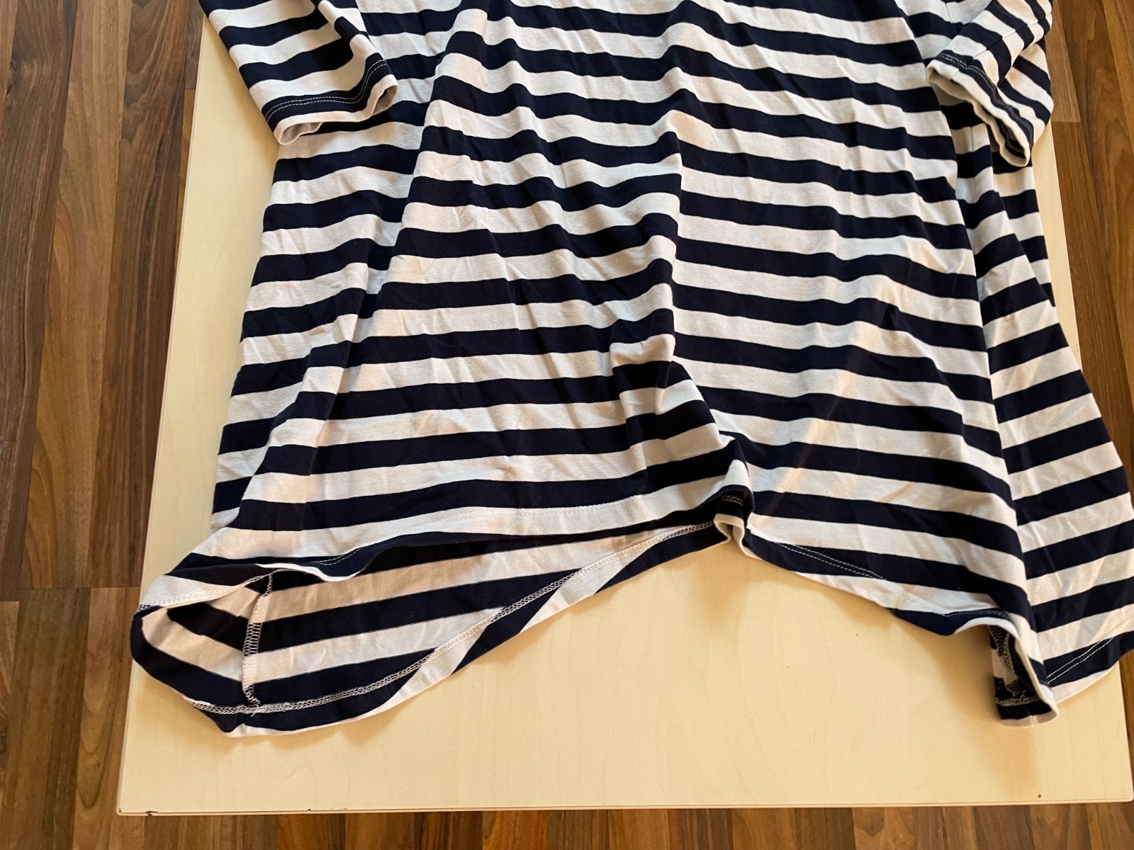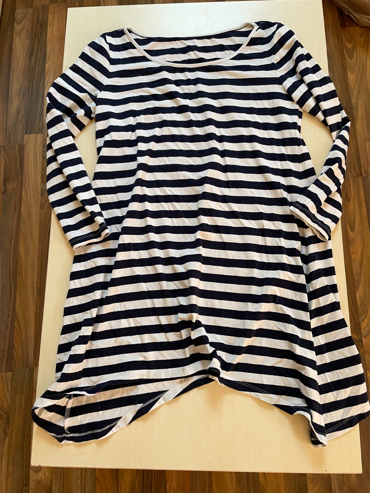 hol. nabízím k prodeji tento dlouhý pruhovaný top / tunika nebo možná minišaty pro menší, po stranách delší cípy, vel není nošen při S/M volně, ale myslím vůle i při L i více, měřte. Modro bílý pruh. Materiál podobný jako bavlna. Nošen, bez vad, zblízka chloupek, ale to dělá ten materiál, krásný