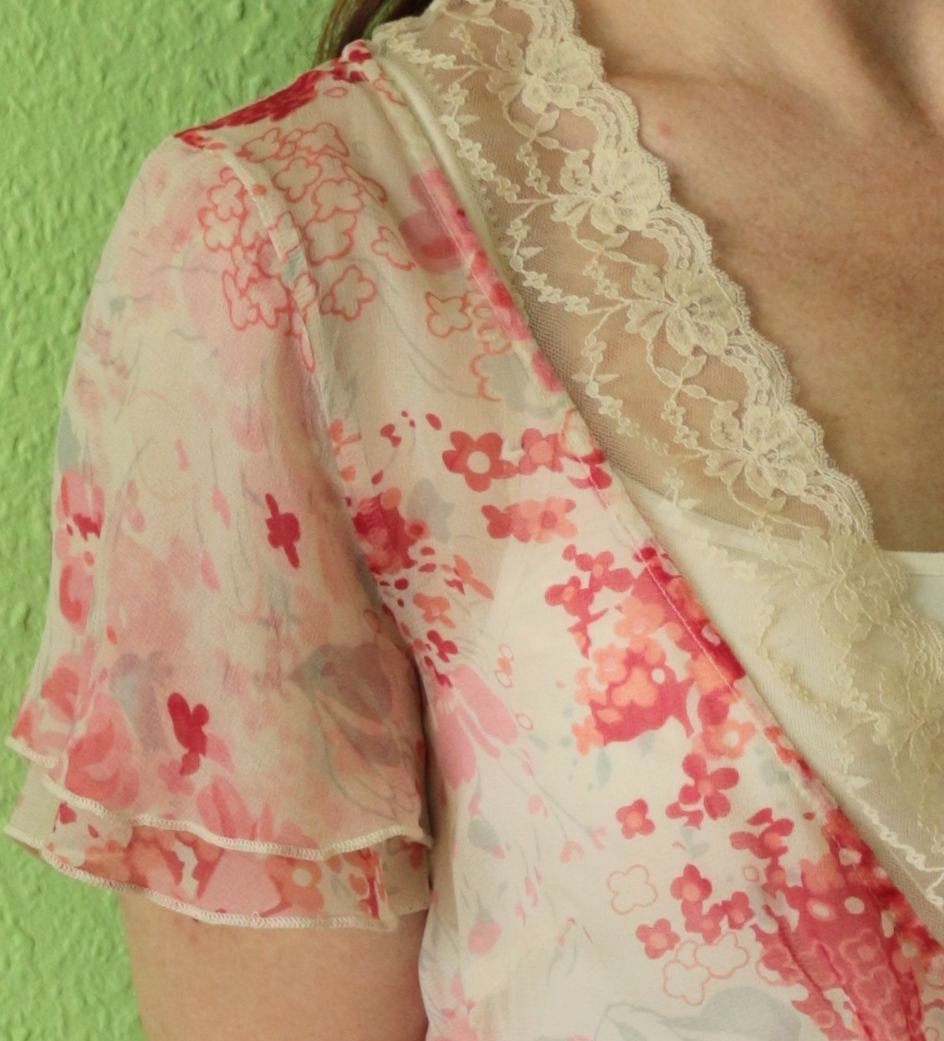 Značková halenka Noa Noa Louisiana Chiffon, z krásně kvítkovaného pravého hedvábí -100% silk. Jemná, mírně transparentní s červeno růžovými kvítky na smetanovém podkladu, má velký výstřih lemovaný krajkou. Je nutné nosit pod ni tílko nebo tričko. V pase nabraná do řady gumiček. Velikost psaná S, myslím že bude sedět i M. Rozměry Vám ráda zašlu. Bezva stav. Odesílám poštou, Balíkovnou nebo Zásilkovnou, cenu za odeslání dám vědět předem.