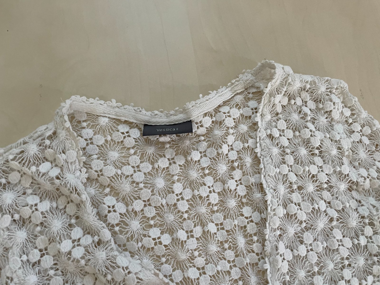 let. nabízím k prodeji tento top/ přehoz, vel S, Yessica. Materiáýl jako přízová/nité krajka - složení není uvedeno. Bez zapínání. Nošen, bez vad jen může být nějaká nitka, nic rušivého, viz fota, krásný