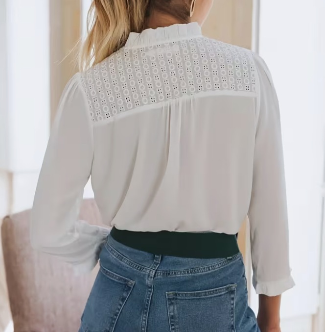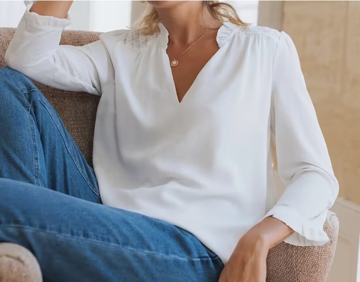 Dámská košile, francouzský styl, výstřih do V, z temu.