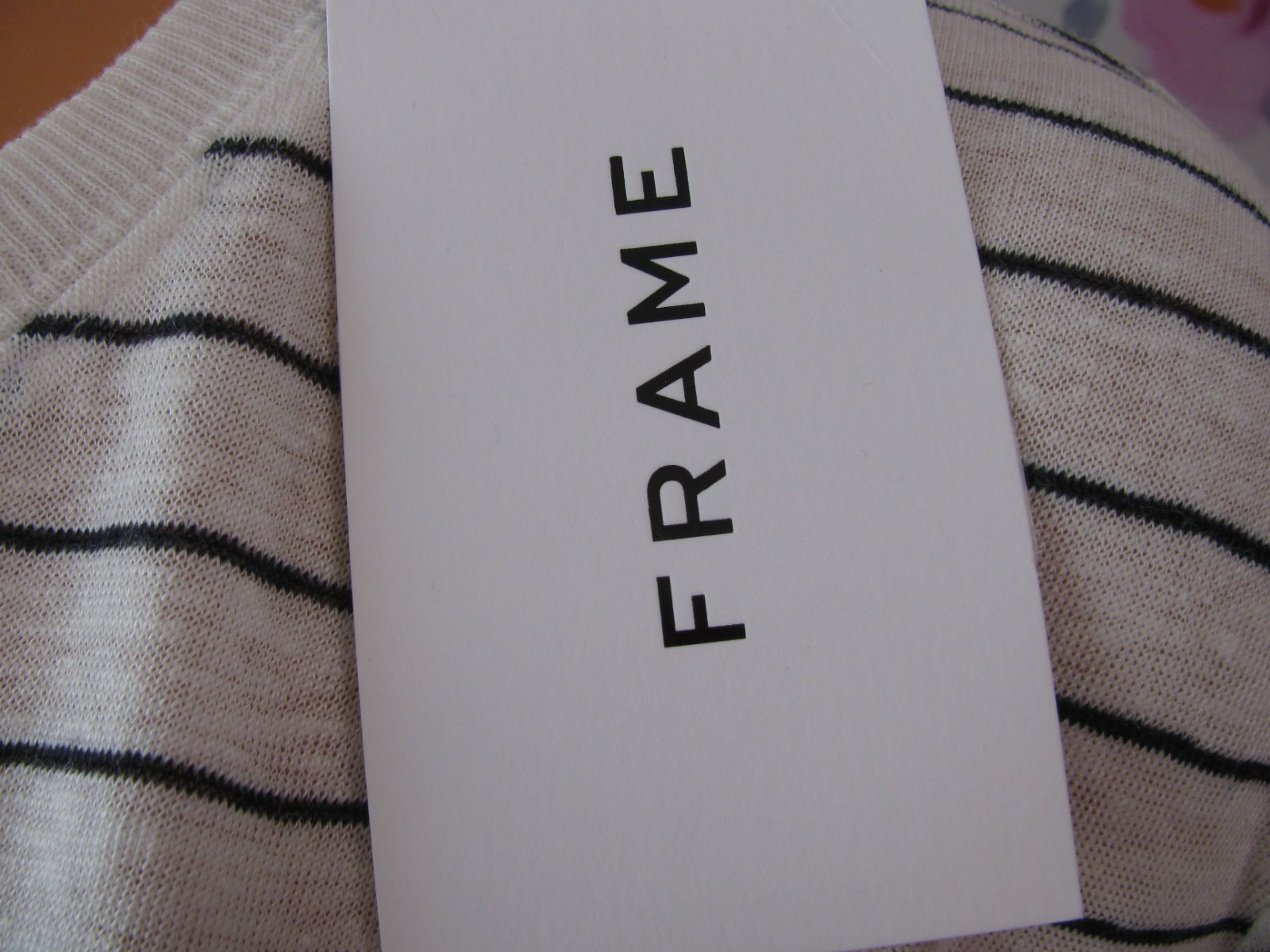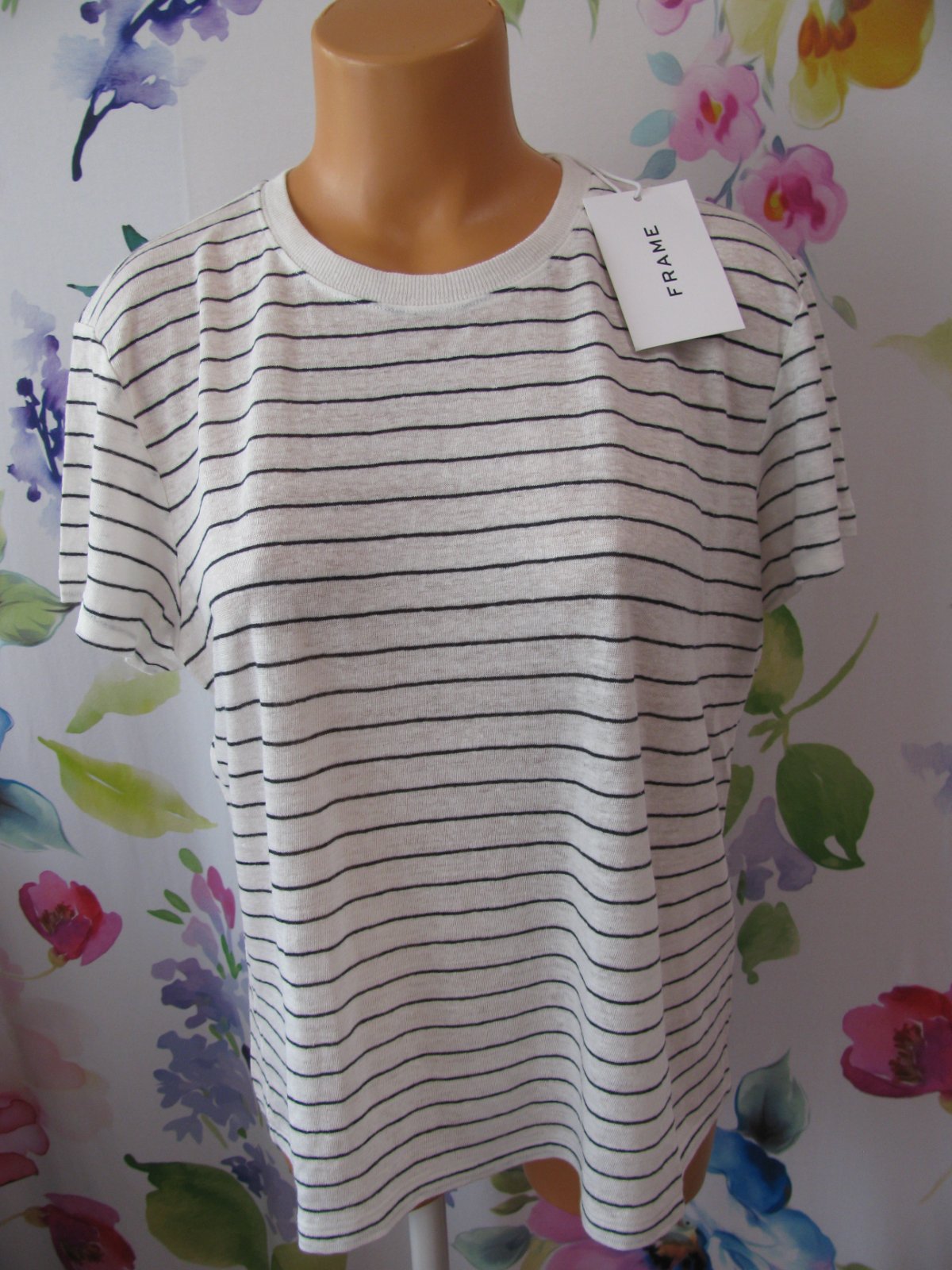Prodám krásnou bílou halenku s černými pruhy z pleteniny, 100% len. PC velmi vysoká - viz na štítku. Prodávám pod cenou, nevhodný dárek.