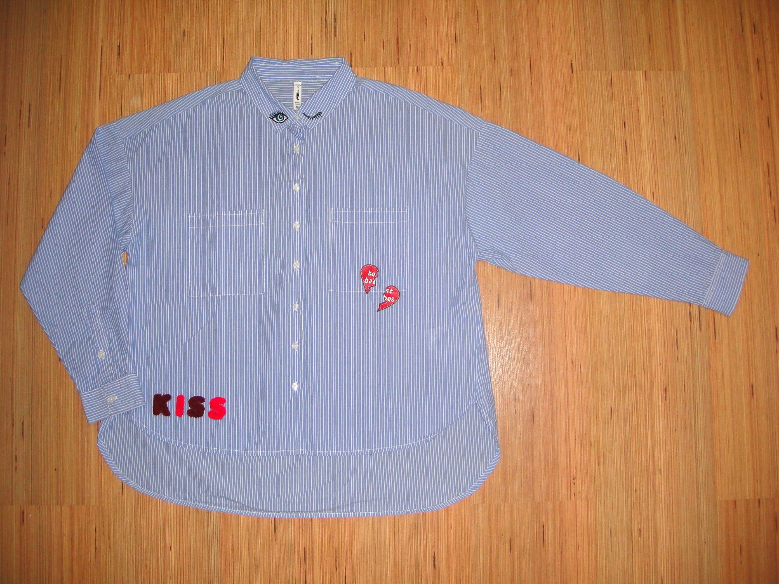 Košile oversize je v pěkném stavu. Oblečená vypadá hezky.