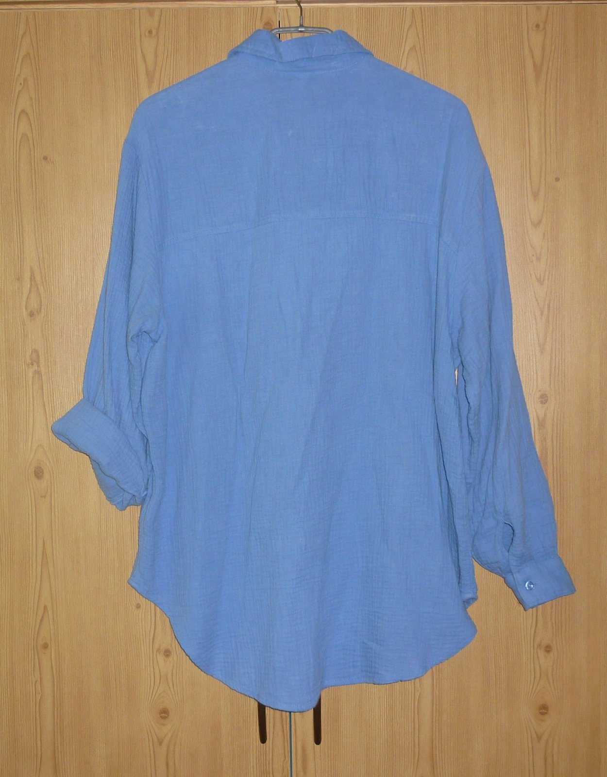 Prodám dámskou modrofialovou mušelínovou košili Takko Fashion, 2x na sobě, ve velmi dobrém stavu. Dlouhý rukáv, celopropínací, spodek do obloučku, přední díl je kratší než zadní díl. Materiál: 100% bavlna. Velikost: 34 (košile je volná, typu oversize, vhodná určitě až do velikosti 38). Rozměry: šířka v místě podpaží 63cm x 2, délka rukávu od krku 74cm, délka rukávu od ramene 56cm, celková délka předního dílu 78cm, celková délka zadního dílu 84cm. Cena: 190,-Kč + poštovné. Koukněte na moje další inzeráty, třeba si něco vyberete a ušetříte na poštovném. Tel.: 728 455 567