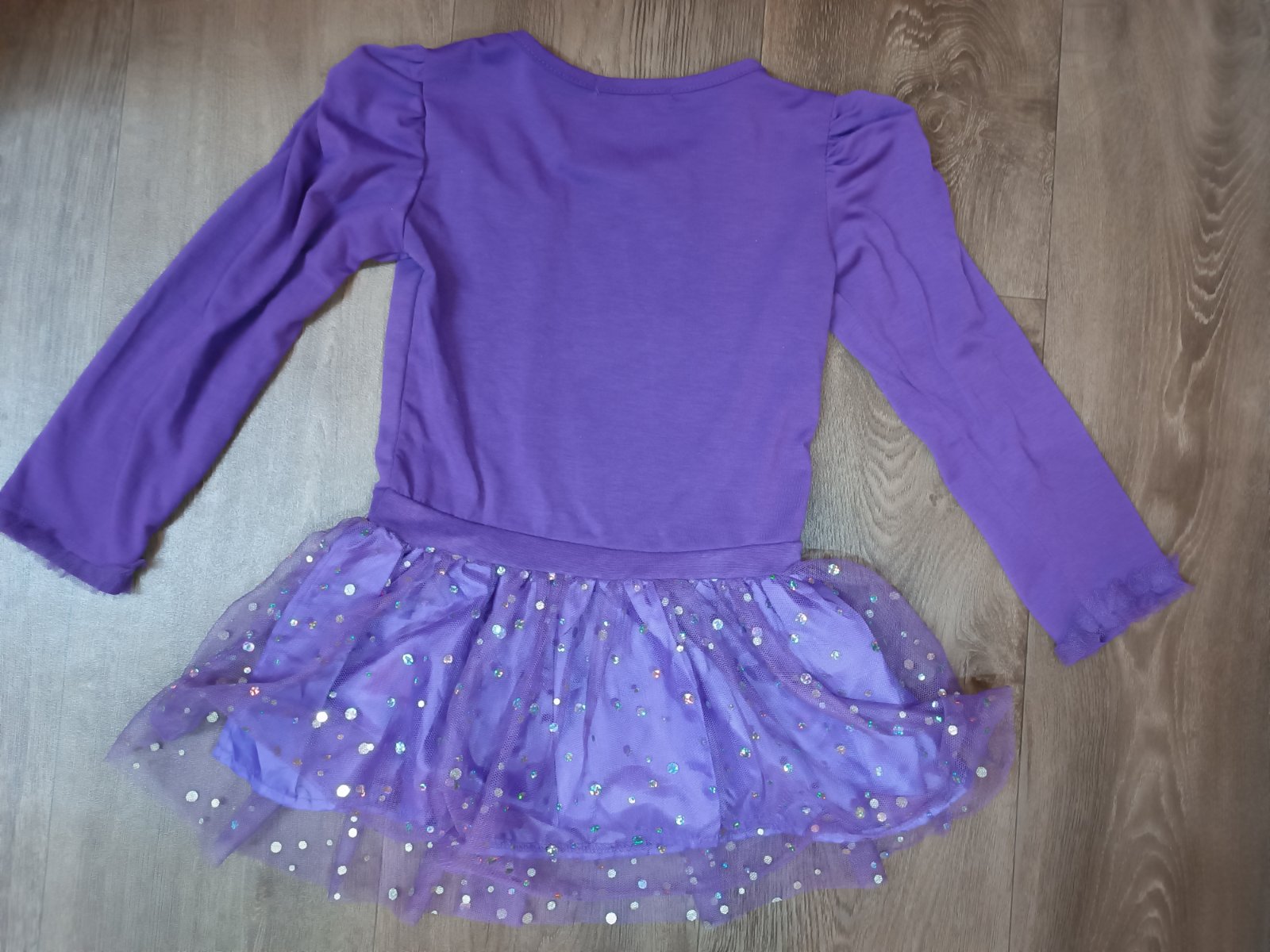 Prodám dívčí fialovou tuniku, vel. 130 - flitry na sukýnce, nařasené rukávy, nenošené, pěkný stav.