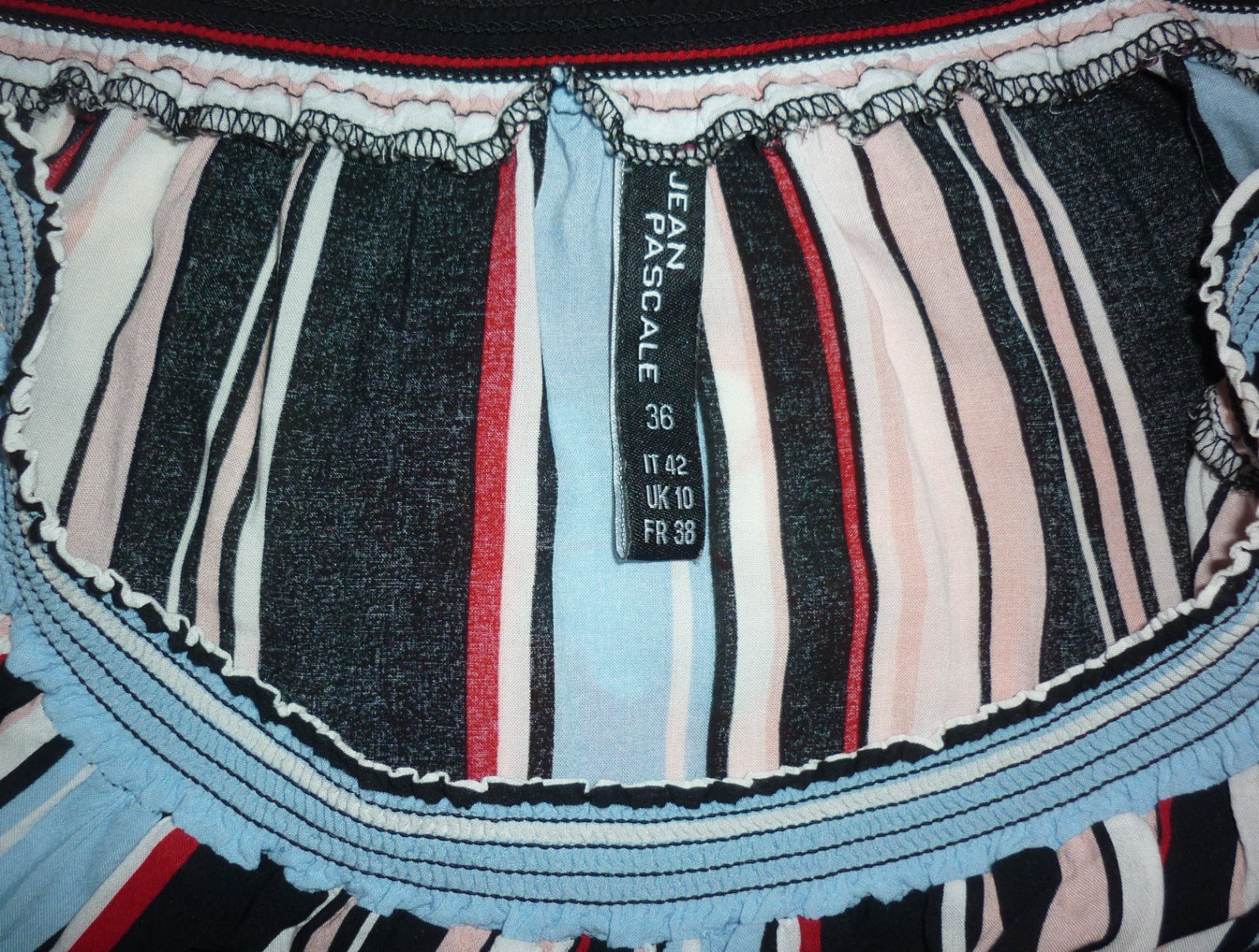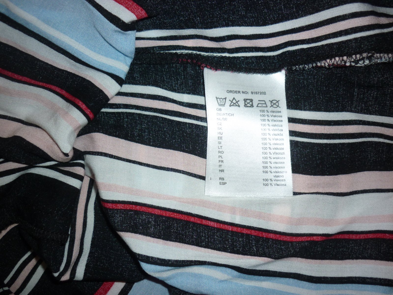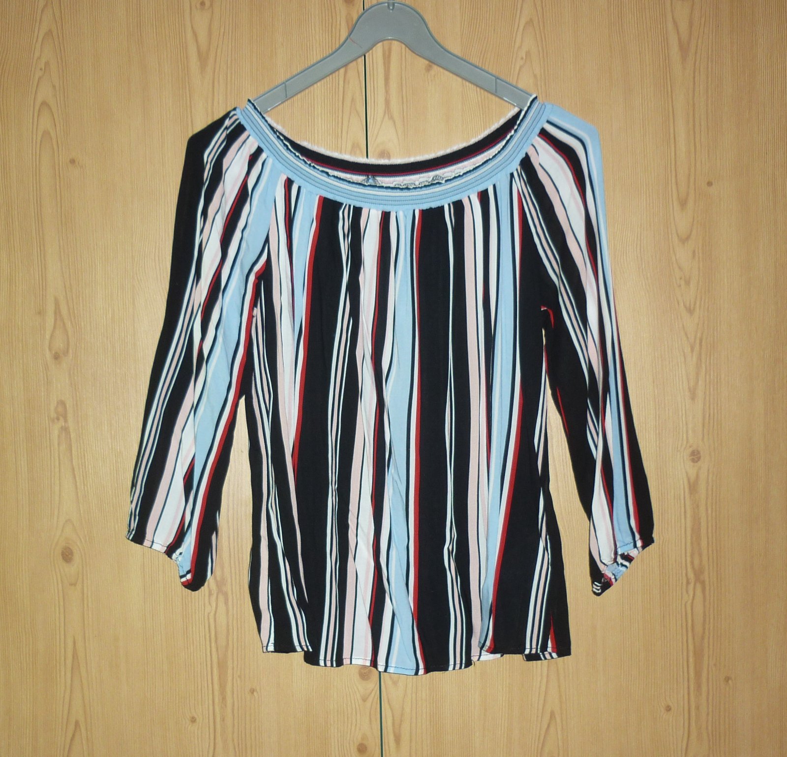 Prodám dámskou proužkovanou halenku Takko Fashion, 1x na sobě, ve velmi dobrém stavu. Ve výstřihu gumička, lze tedy nosit klasicky nebo natáhnuté přes ramena. 3/4 rukáv, volný střih. Materiál velmi lehký, vzdušný: 100% viskóza. Velikost: 36. Rozměry: šířka v místě podpaží 54cm x 2, celková délka 59cm. Cena: 80,-Kč + poštovné. Koukněte na moje další inzeráty, třeba si něco vyberete a ušetříte na poštovném. Tel.: 728 455 567