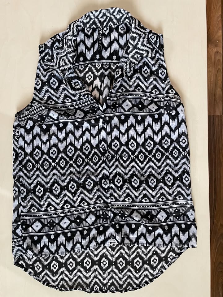 1580. nabízím k prodeji tuto černobílou halenku, vel 38 a 12, myslím Mi L , prosím měřte. Colours of the world. Materiál jako šifon, lehce prosvítavý, ale má vzor. 100% polyester. Nošená, bez vad, krásná