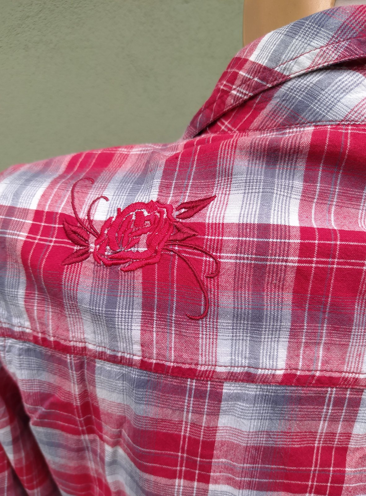 Jako nová. Krásný stav. Bez známek nošení (nenošená), ale štítky jsou ustřihlé - materiál odhaduji na 100% bavlna. Mírně vypasovaná. Záševky na prsa. Vzadu na rameni výšivka.