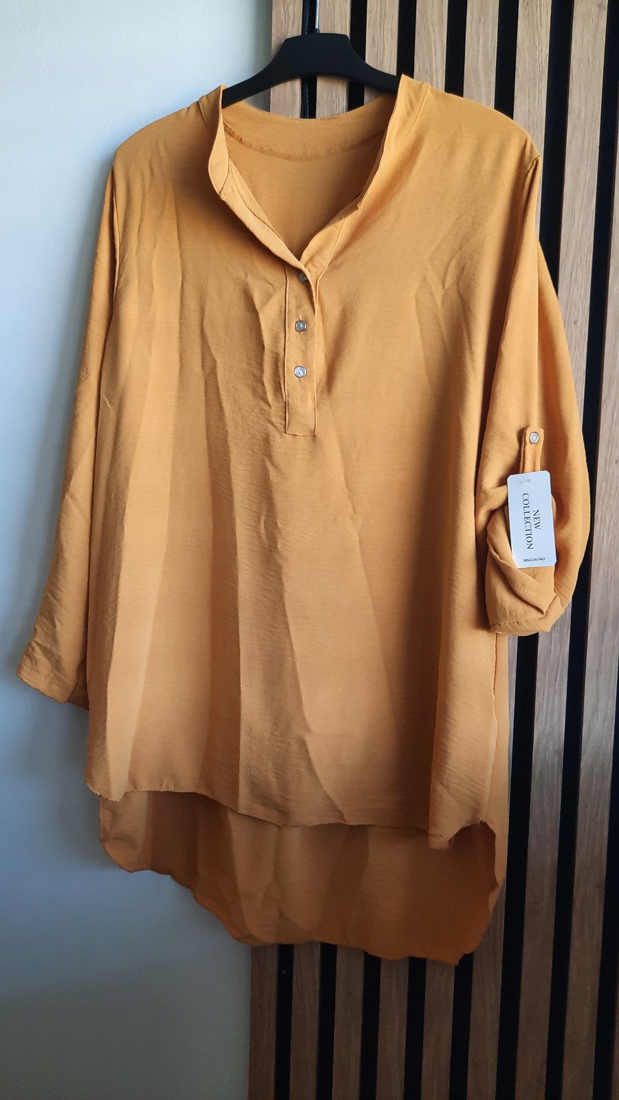 Prodám luxusní košilovou tuniku Made in Italy, novou, nenošenou, pouze vypranou, bez papírové cedulky. Na předním díle zapínání do půlky na knoflíčky, 1 větší kapsa. Přední díl je jakoby pružná koš...