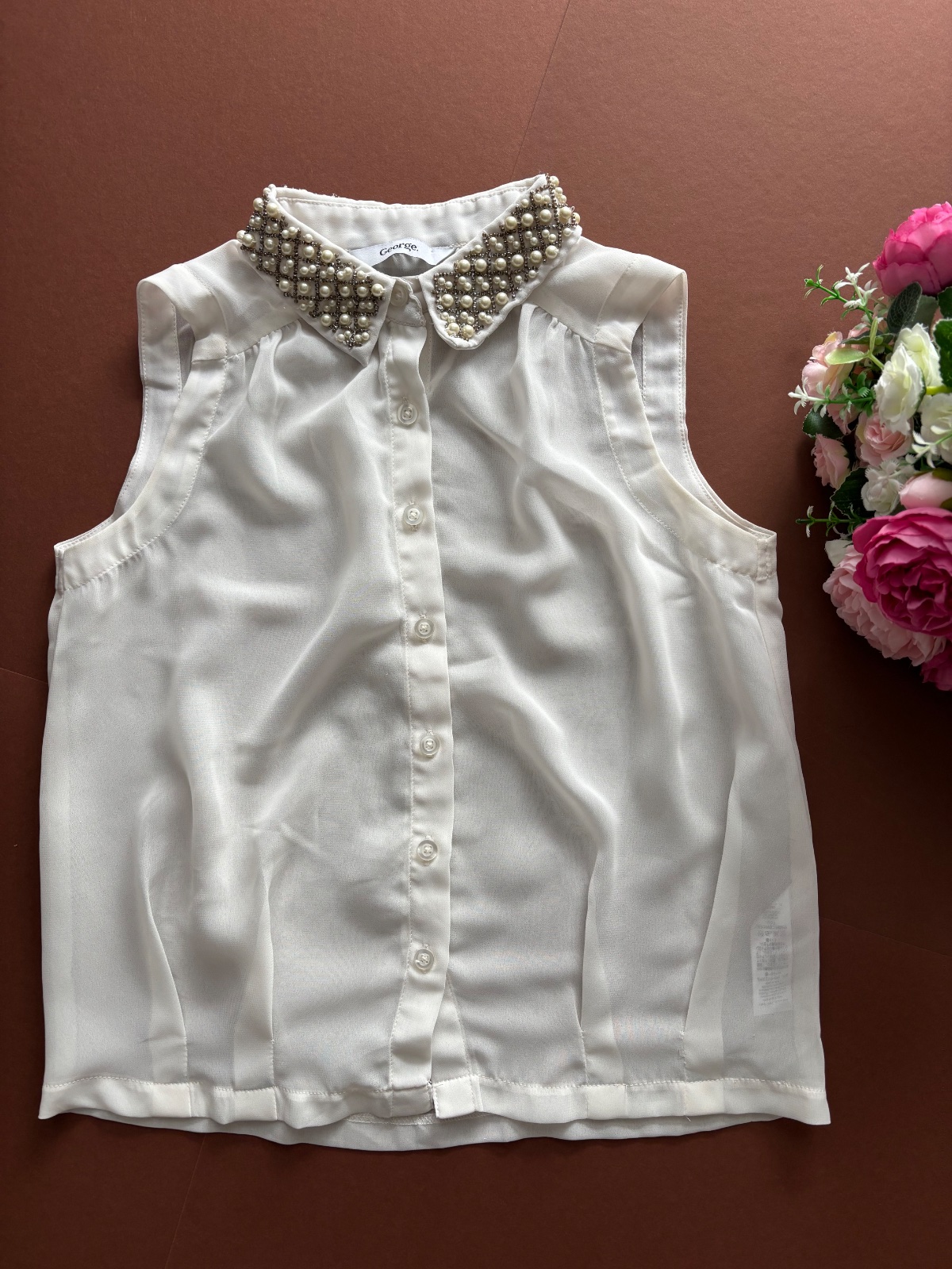 Košile bez rukávu s korálky šifonová - v.9/10 let