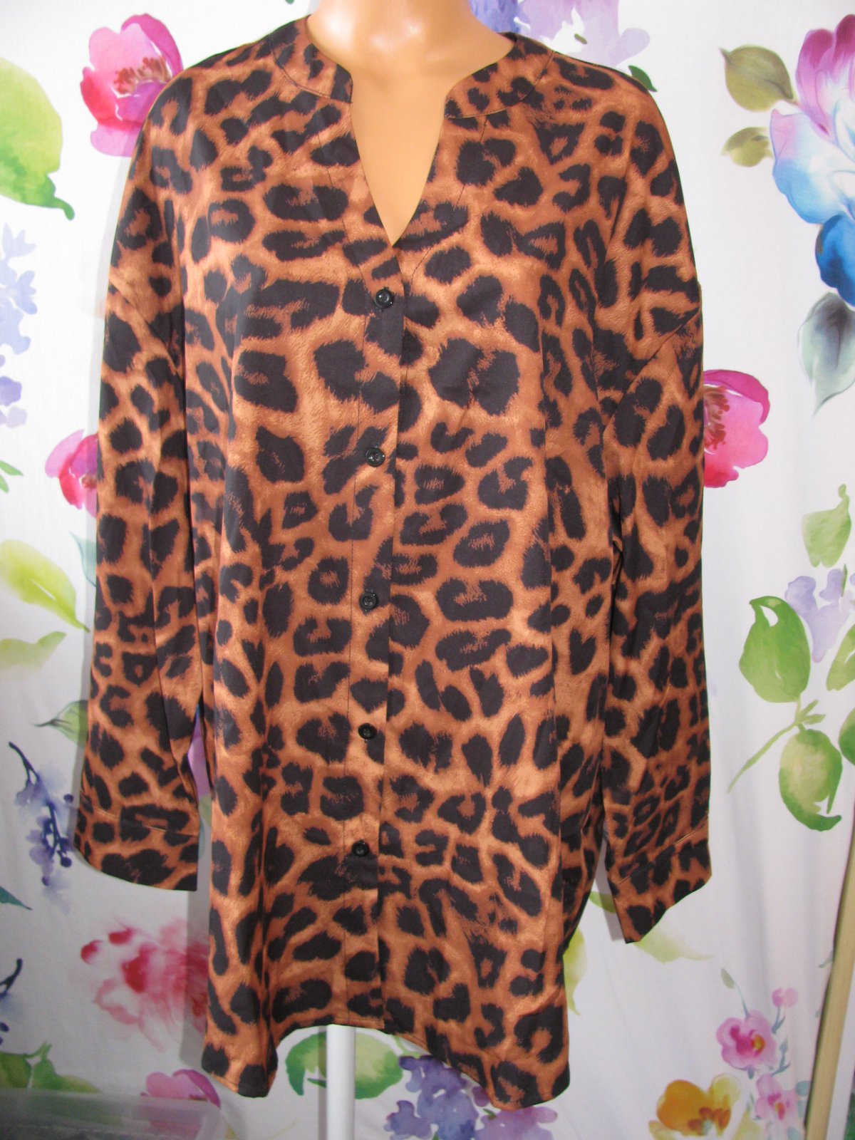 Dámská halenka s dlouhým rukávem, na konci do manžety s knoflíkem, halenka je na propínání na knoflíky, 100% polyester. Označení velikosti na štítku nesedí, uvádím dle rozměrů. 54-56.