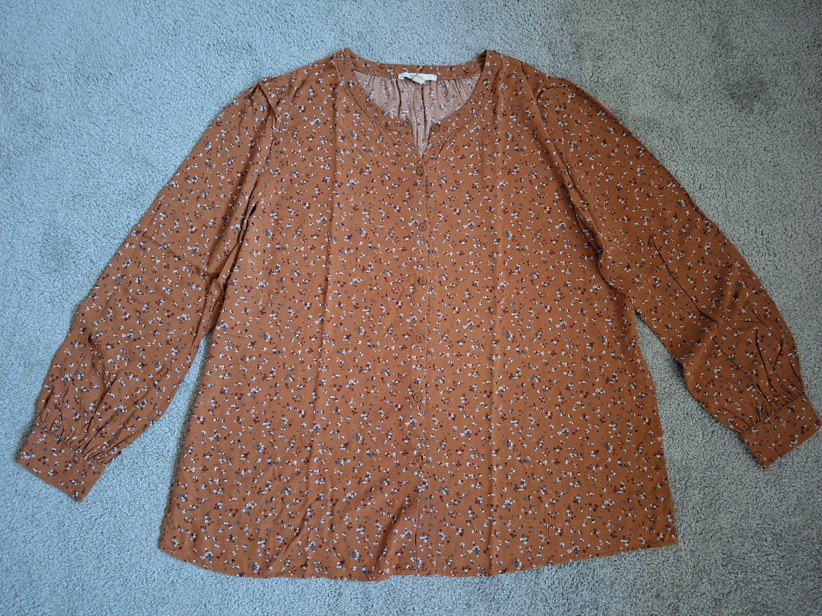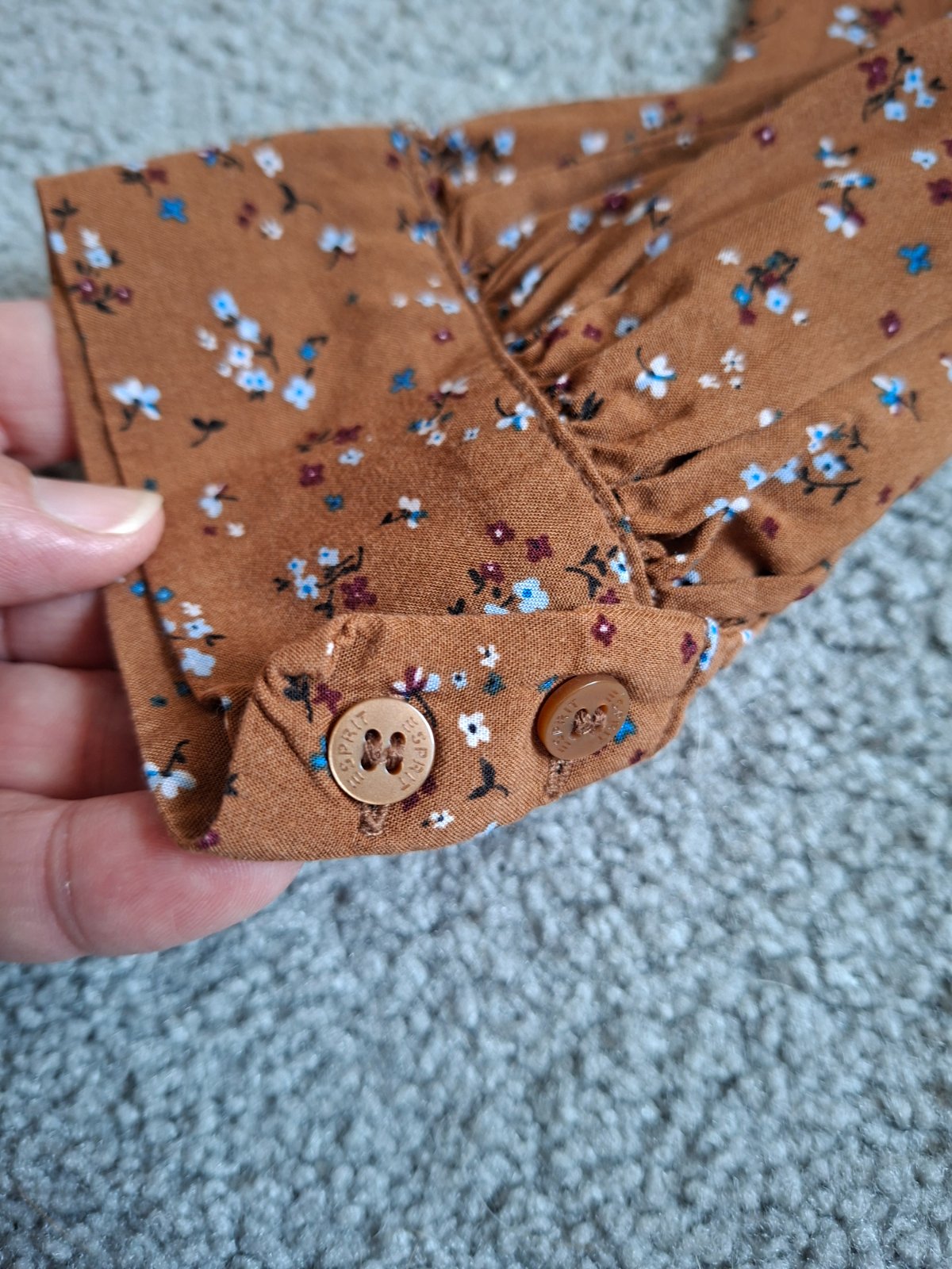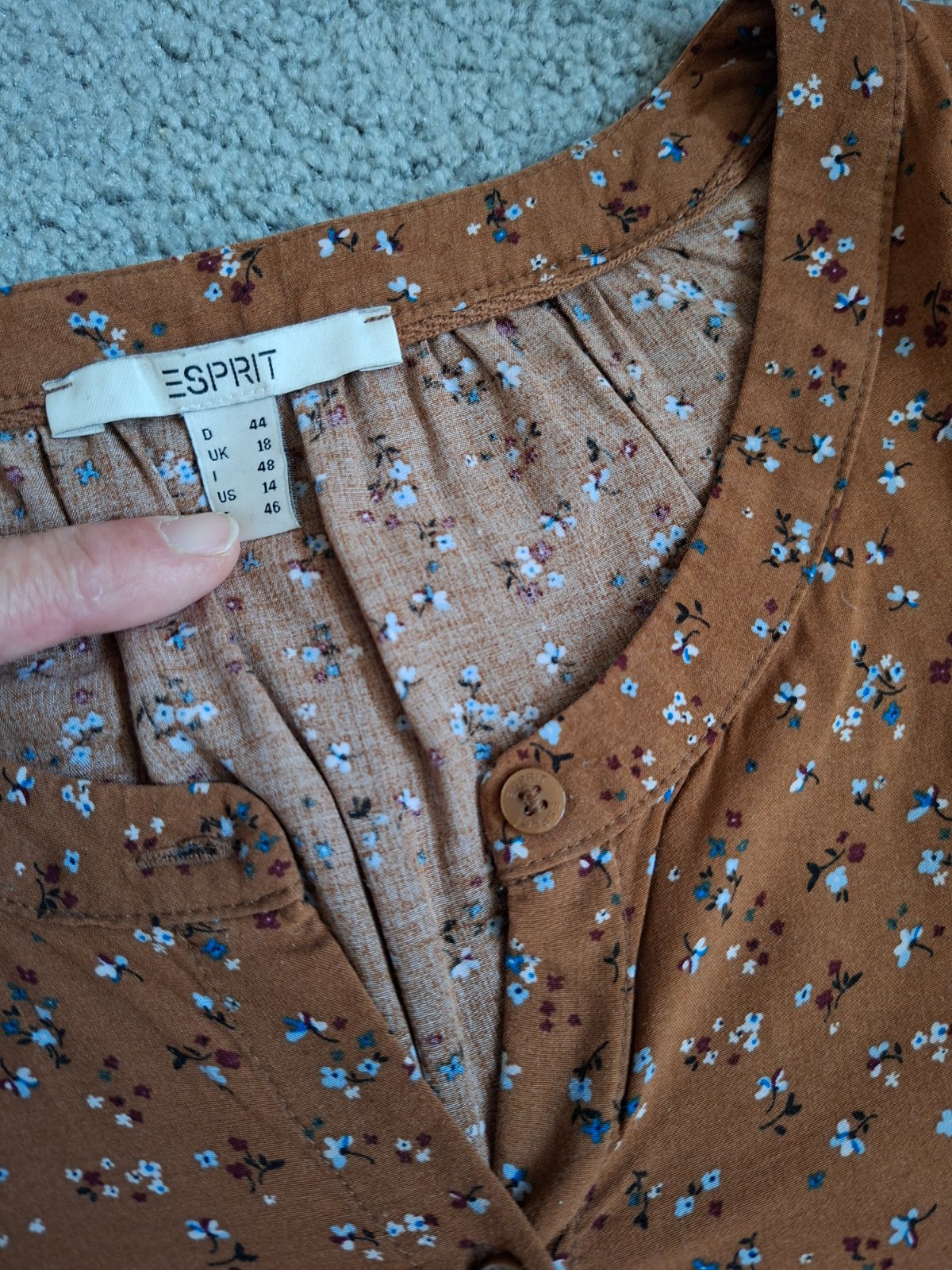 Příjemný splývavý materiál, párkrát na sobě, ale nevyužiji, řasení u manžet rukávů, na ramenou a u průkrčníku na zadním díle...délka 75 cm, šířka pod průramky 2x 63 cm, ramena 40 cm, rukáv od ramene 64 cm
