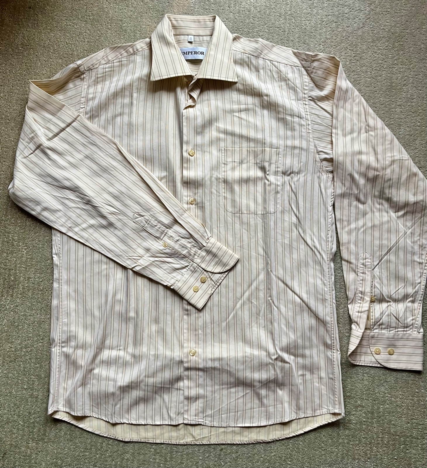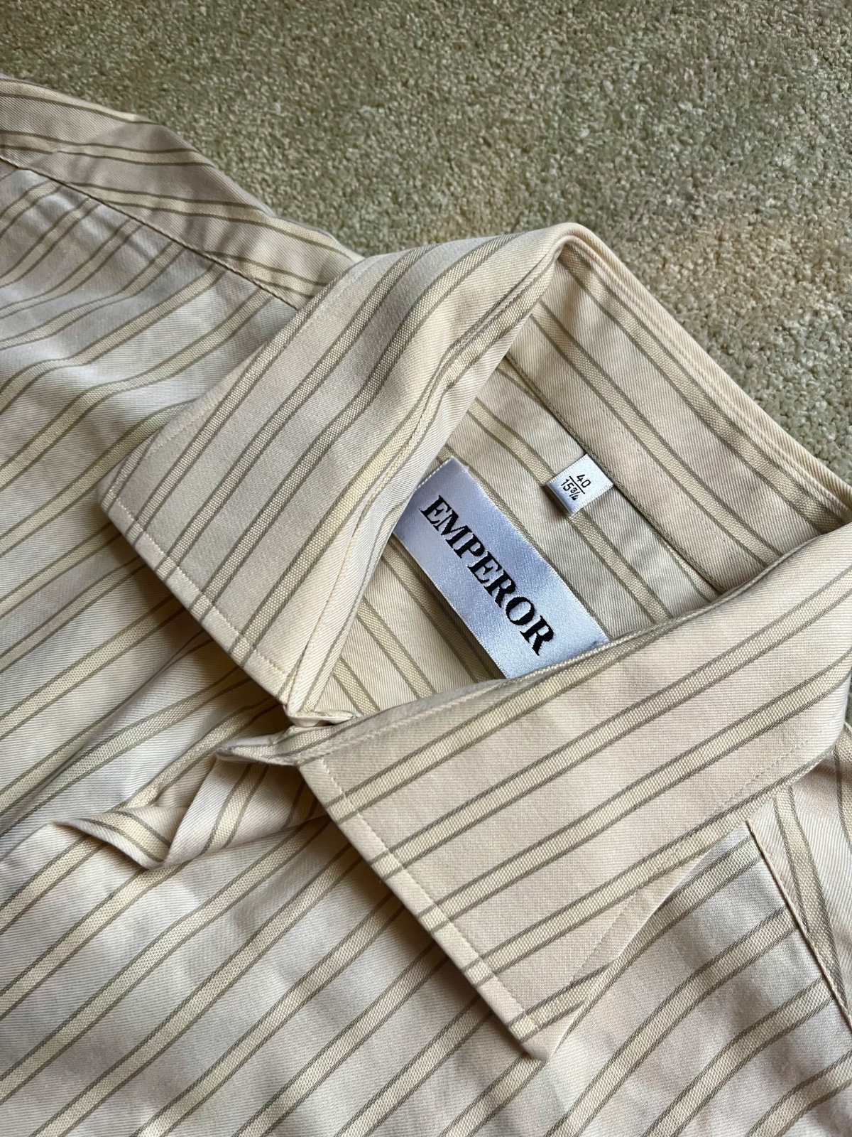 Obleková proužkovaná kvalitní košile Emperor ze 100 % bavlny, vel 40 (15 3/4), téměř nenošená, ušitá v ČR