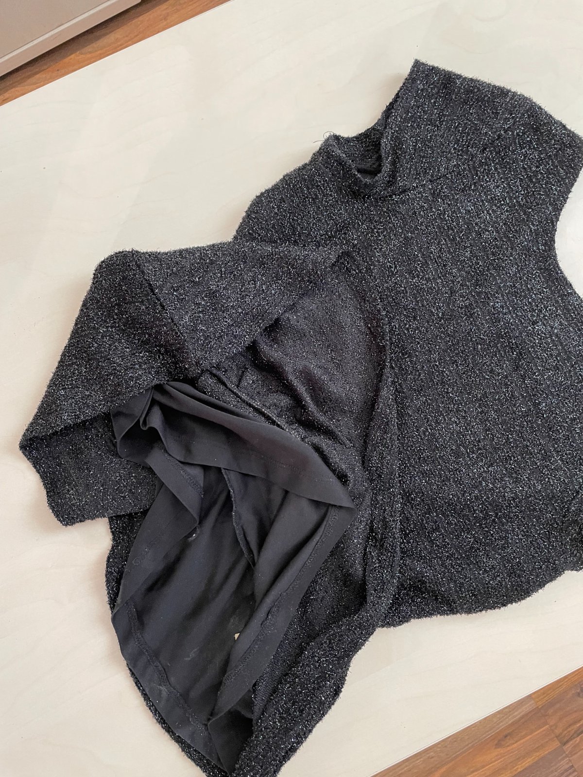 let. nabízím k prodeji tento top z lesklých vláken, vel S spíše do XS, měřte, Mohito. Vrchní materiál umělý úplet, lesknoucí se, pod tím na tělopošívka. Předěl do malého volánu, je tam našité logo Mohito. Je přiichycené za krajní očka, asi lépe ještě ve středu stáhnout, aby drželo pevněji. Nošen, bez vad, krásný