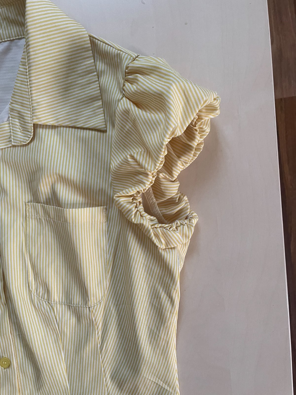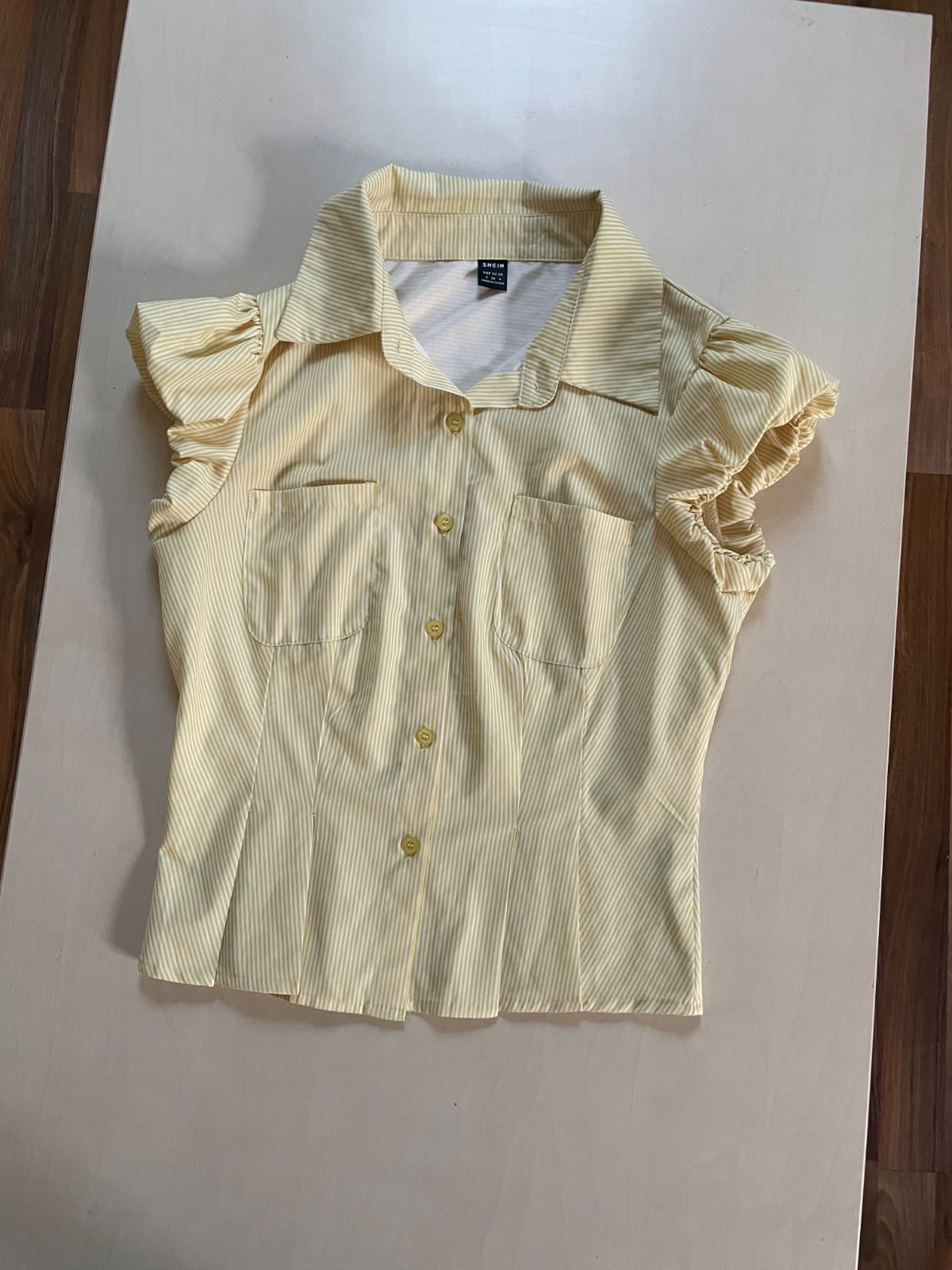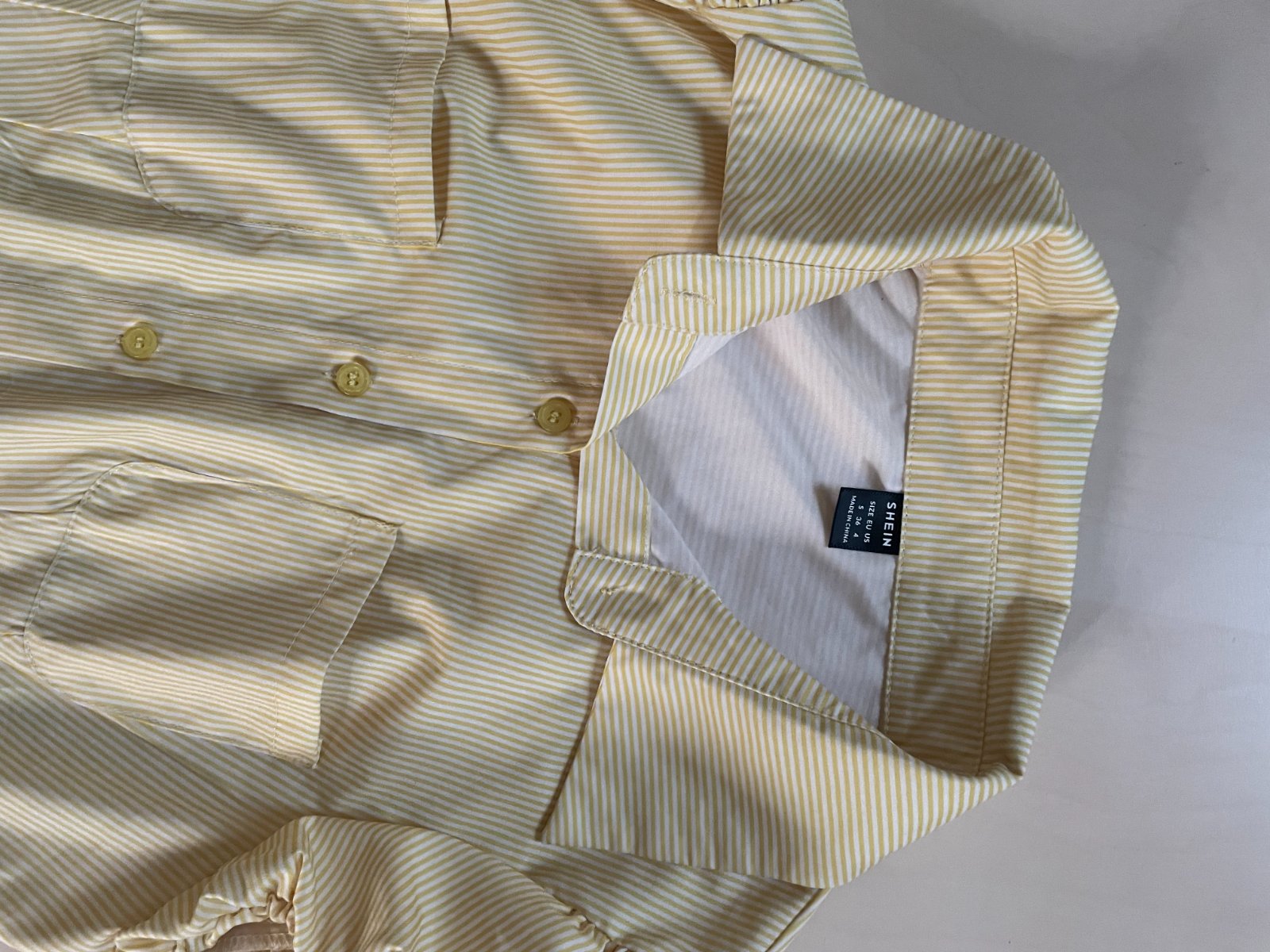hol. nabízím k prodeji tuto halenku s jemným žlutám proužkem a balonkovými rukávky, vel 36/S, Shein. Dole zakládaná do skladů. Materiál umělý, 95% polyester, 5% elasten. Žlutá na foto nevyniká. Dcera skoro ani nenosila, bez vad, krásná