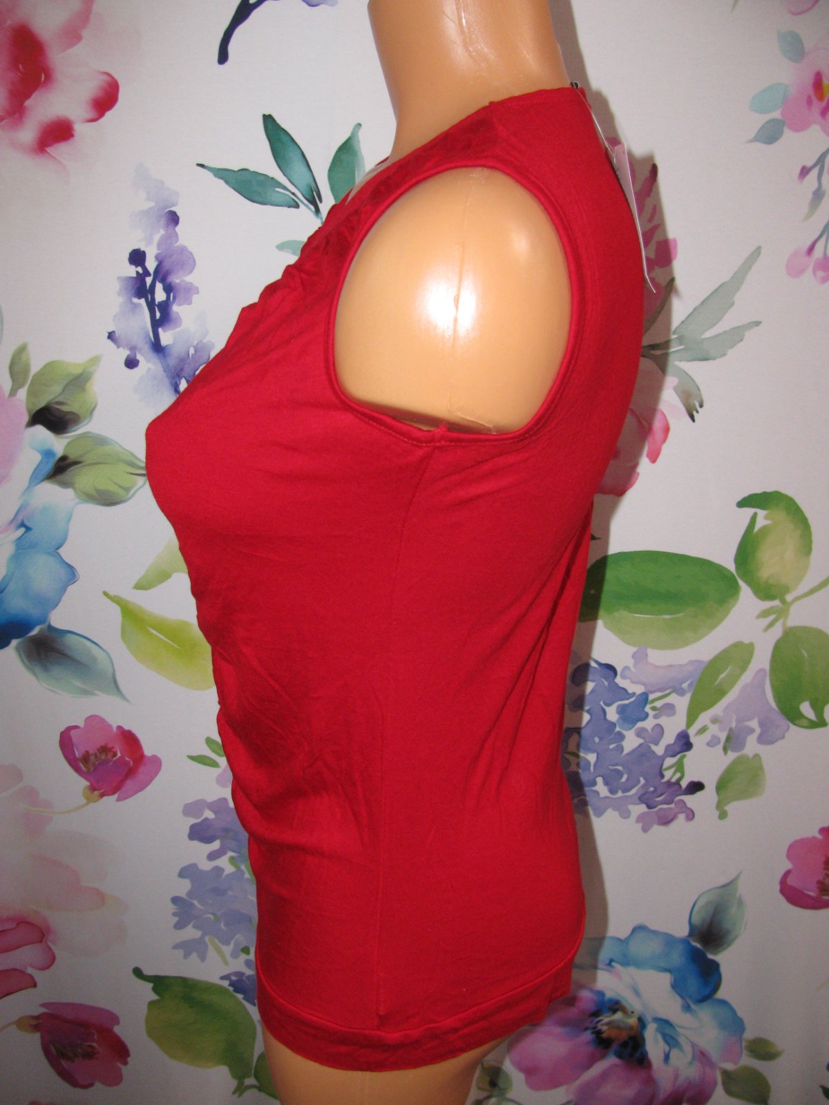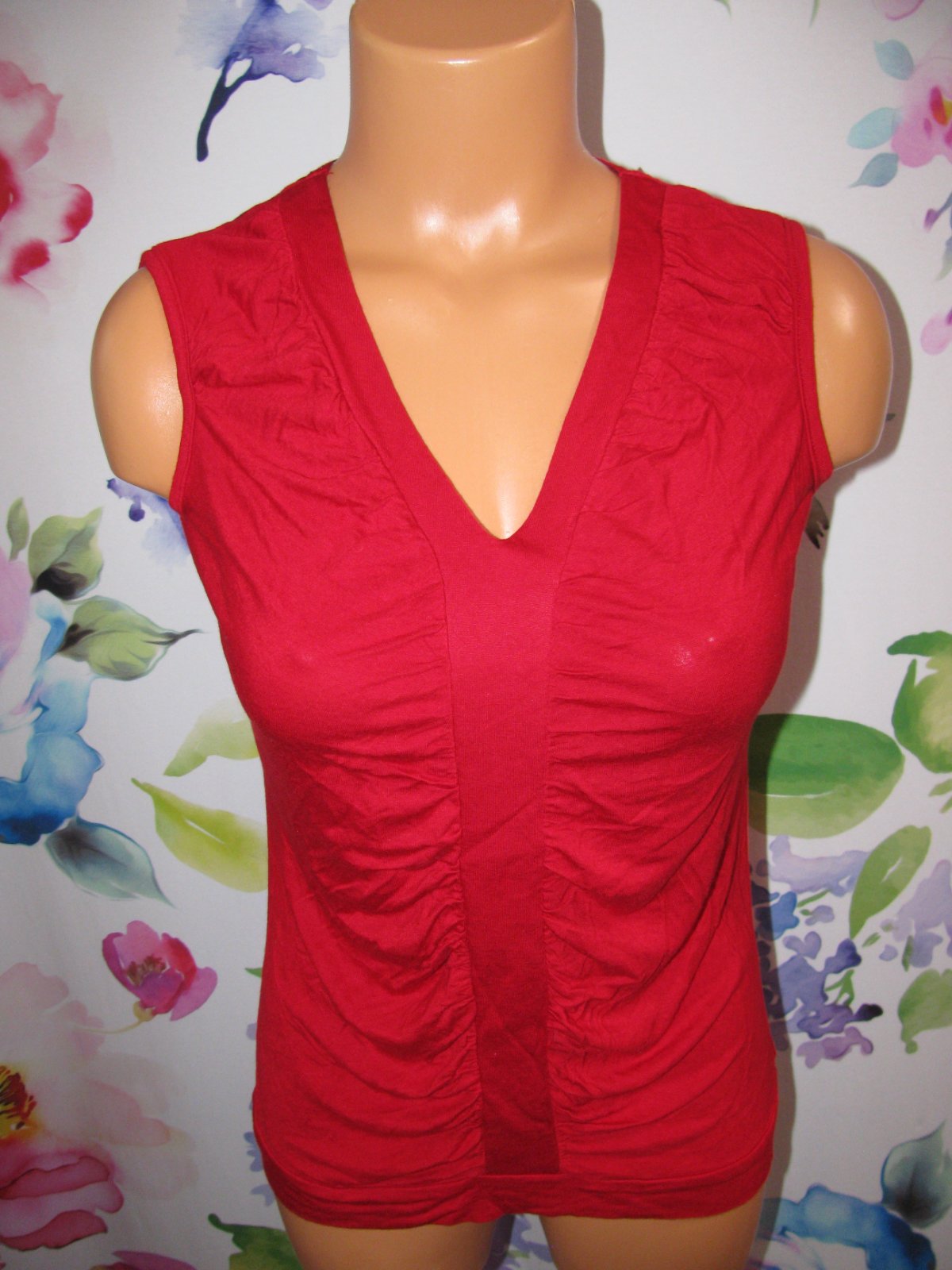 Precizní,sytě červená letní halenka, pružná,100% viskoza.