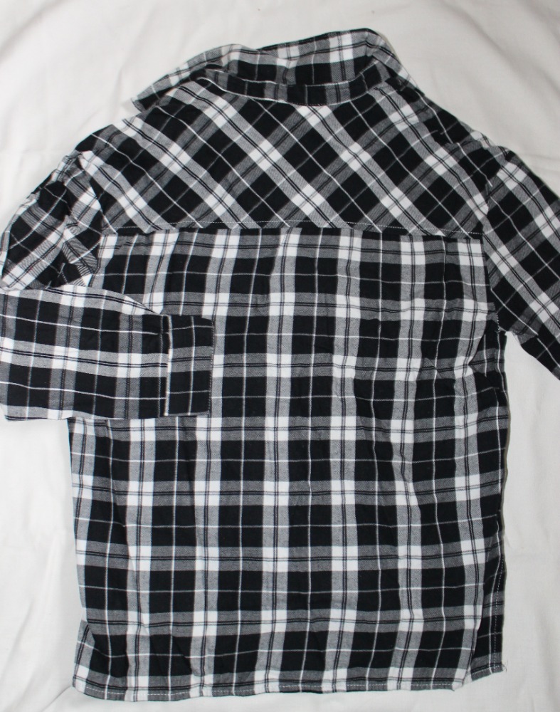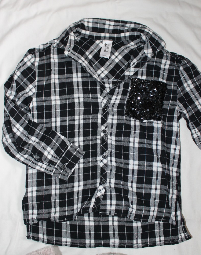 Po naší Ami, plátýnko, zajímavé řešení černobílé káro, plus našitá funkční kapsa s flitry, málo nošená, ve velmi dobrém stavu.
