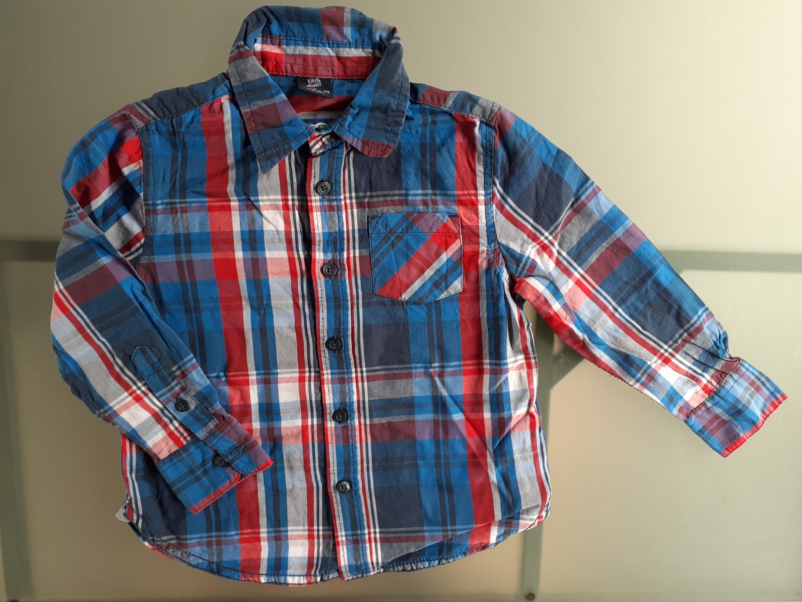 Prodam krásnou kostkovanou košili. Značka Kuniboo velikost 98/104. Vyfotila jsem míry mrkněte na foto. Je tam i detail zadní část je kousek delší. Košile je bez vad, bez fleku. Kluk ji nosil pouze ...