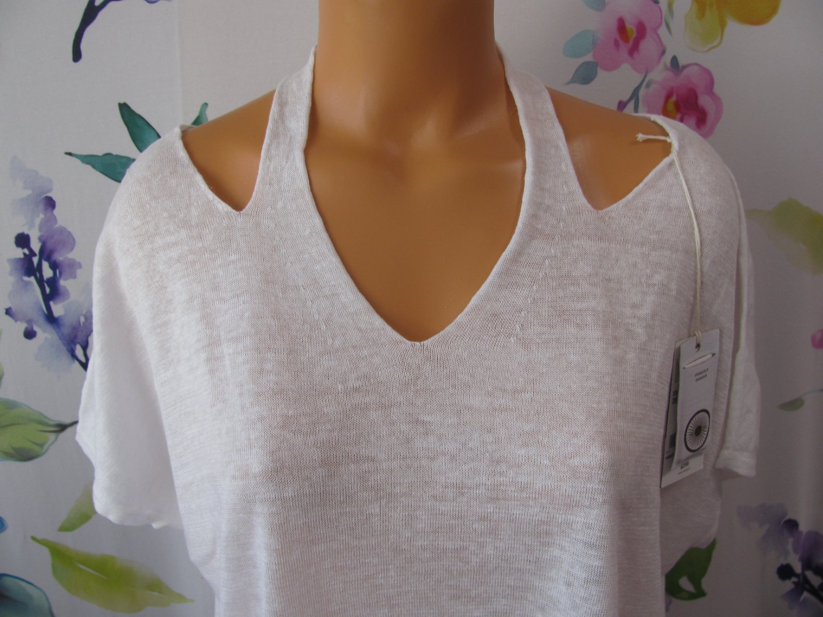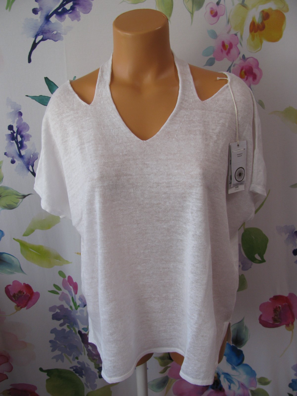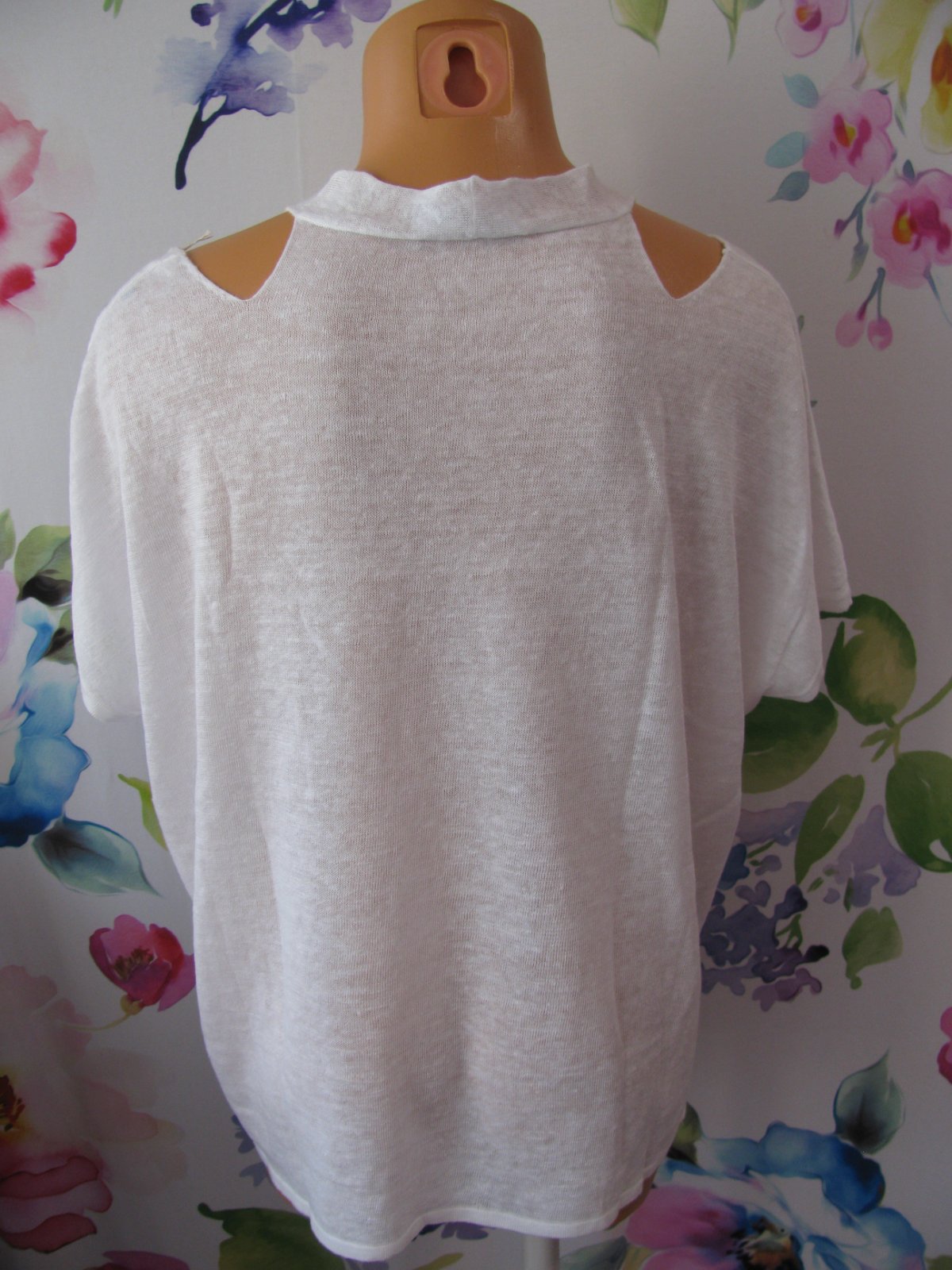Luxusní bílá lněná dámská halenka, dole na bocích krátké rozparky, 100% len.
