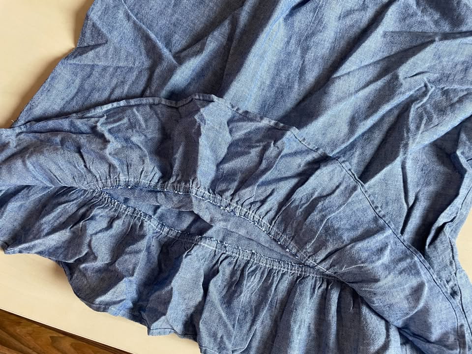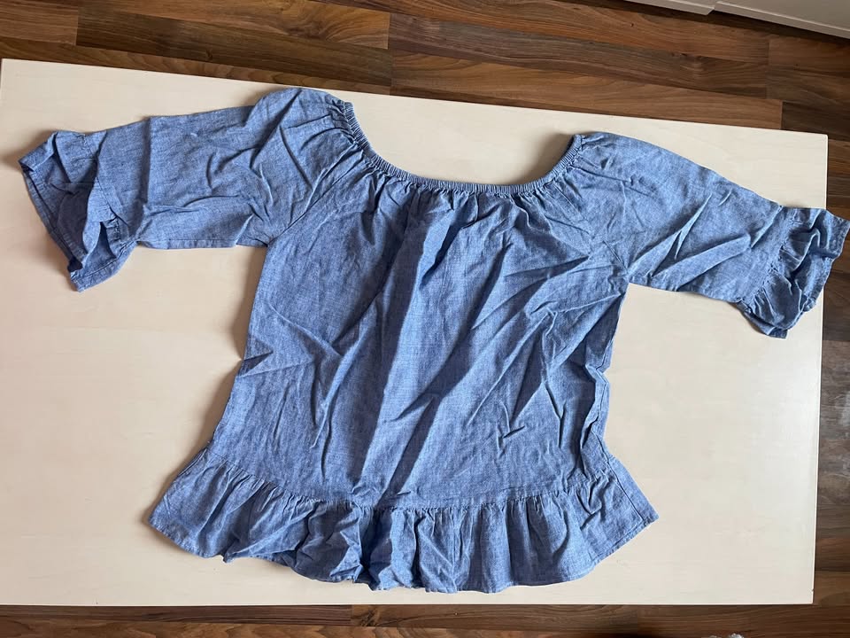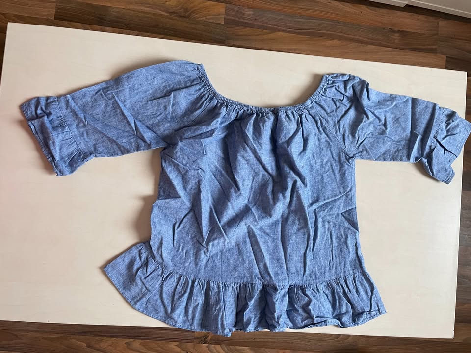 3368. nabízím k prodeji tuto halenku na ramena s podílem lnu, vel 38/tedy M, FF. S gumou s možností stáhnout na ramena. Materiál jako imitace šisované džínoviny, 83% bavlna, 17% len. Nenošená, bez vad, krásná